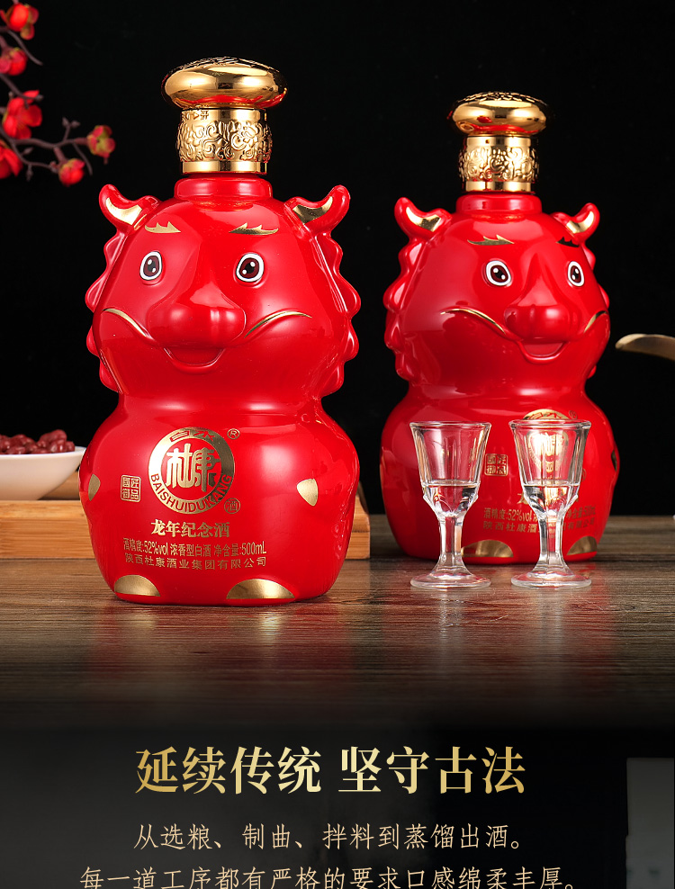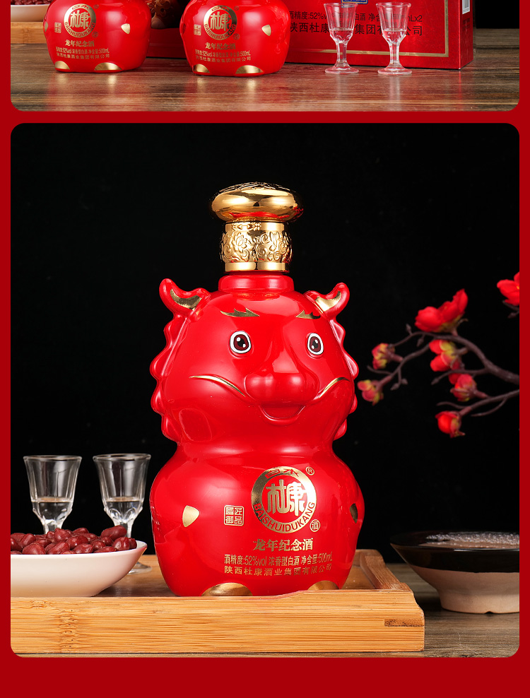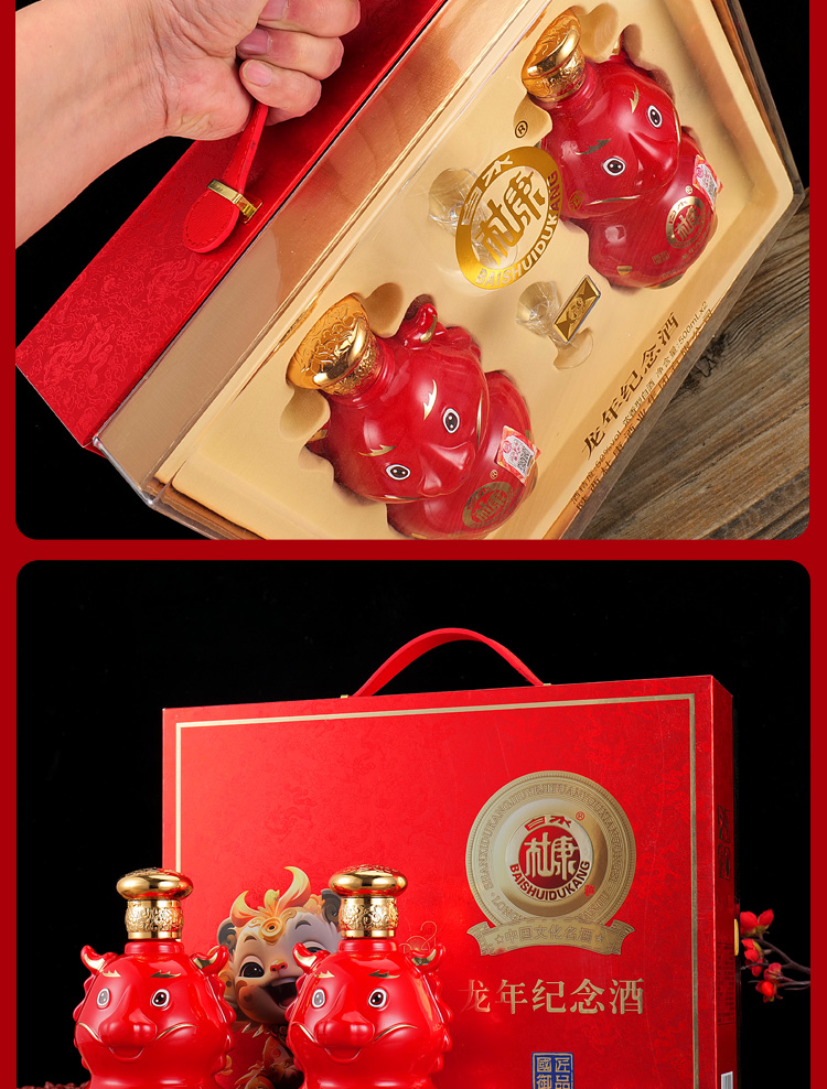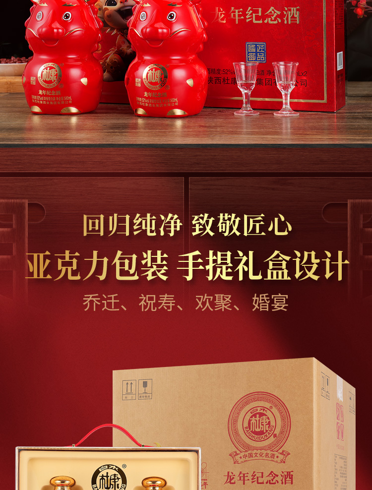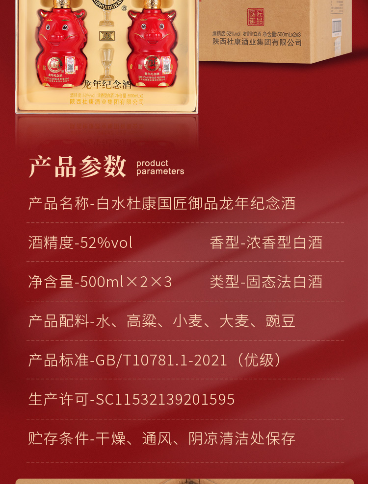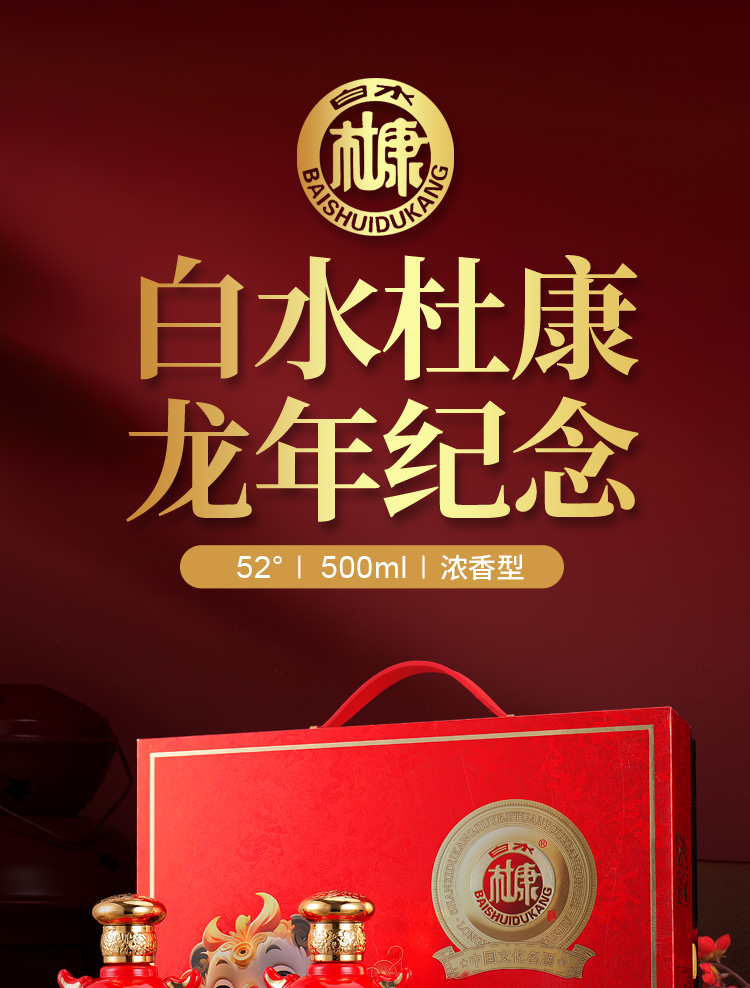 白水杜康 国匠御品 龙年纪念酒 52度 浓香型白酒 礼盒 500ml*2瓶*3盒 整箱