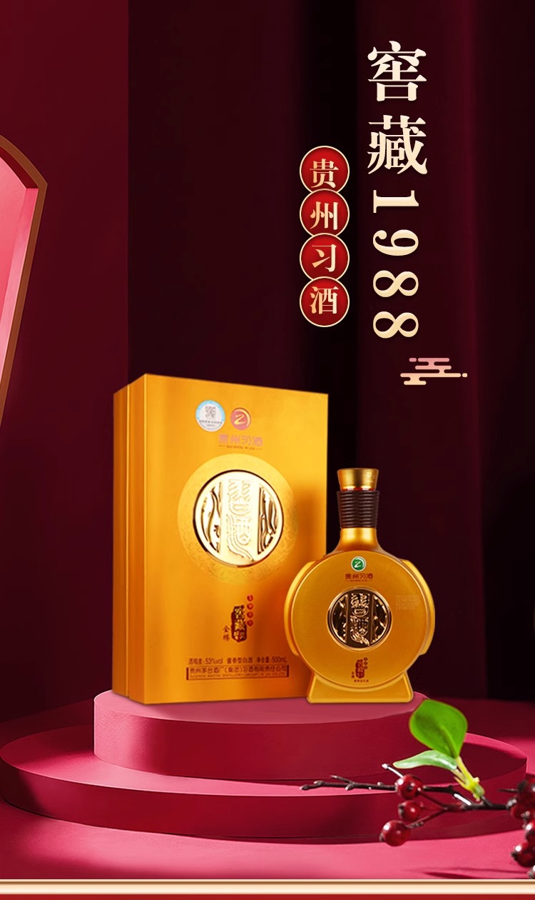 习酒白酒 窖藏1988金樽 53度 酱香型白酒 礼盒装 500mL*6瓶 整箱