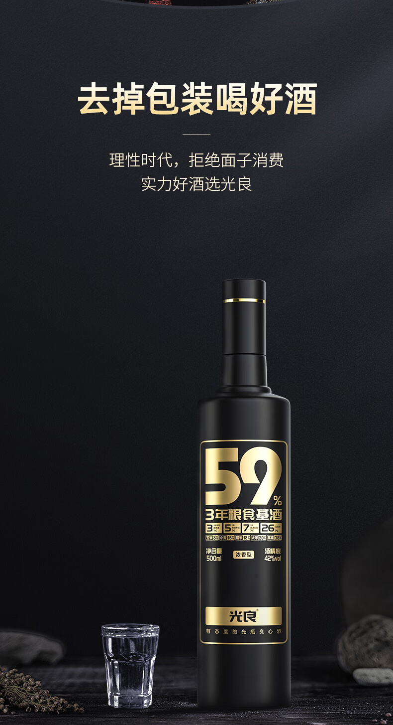 光良 59系列 52度 浓香型白酒 纯粮酿造 聚会自饮 500ml*6瓶 整箱