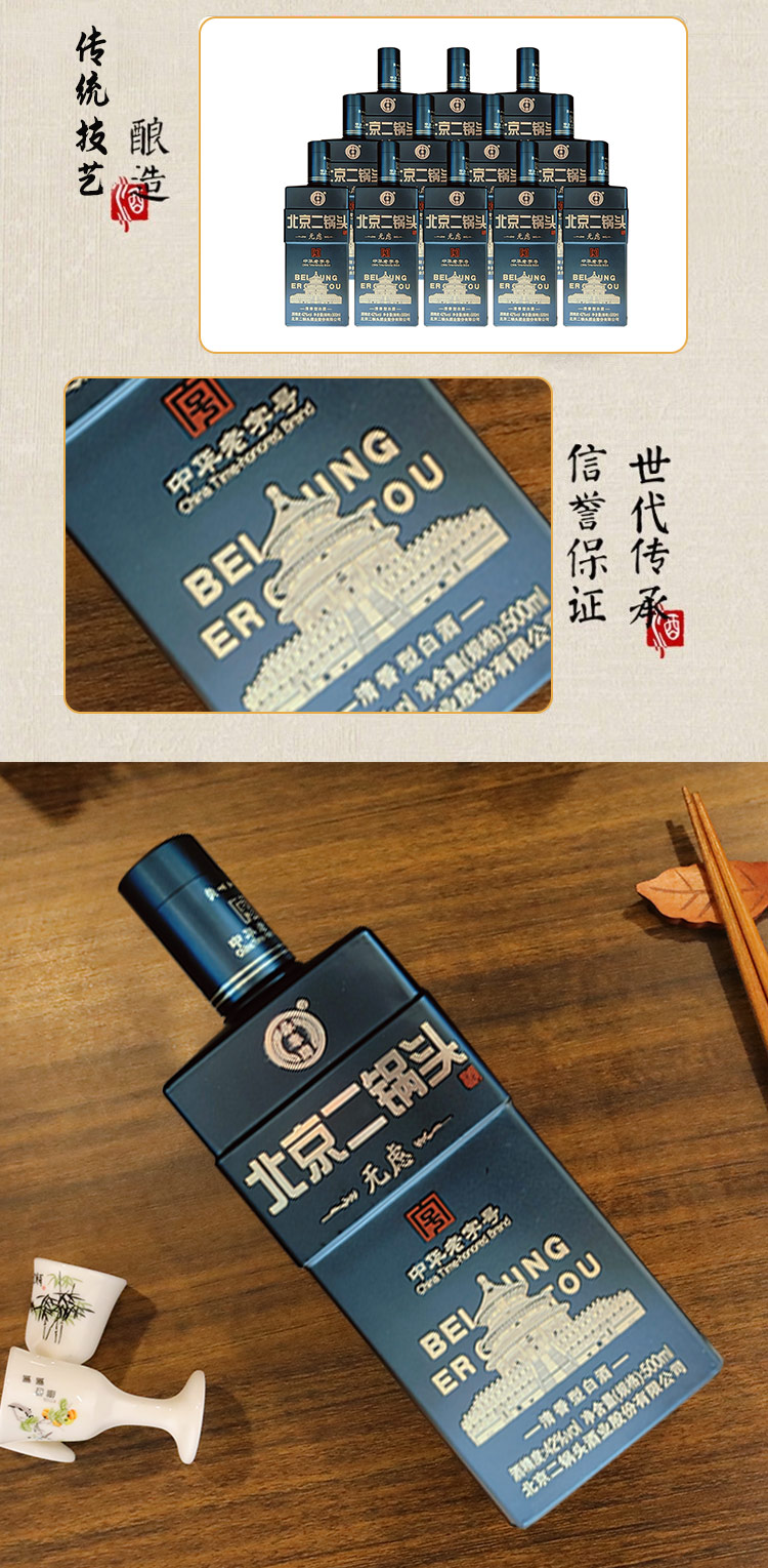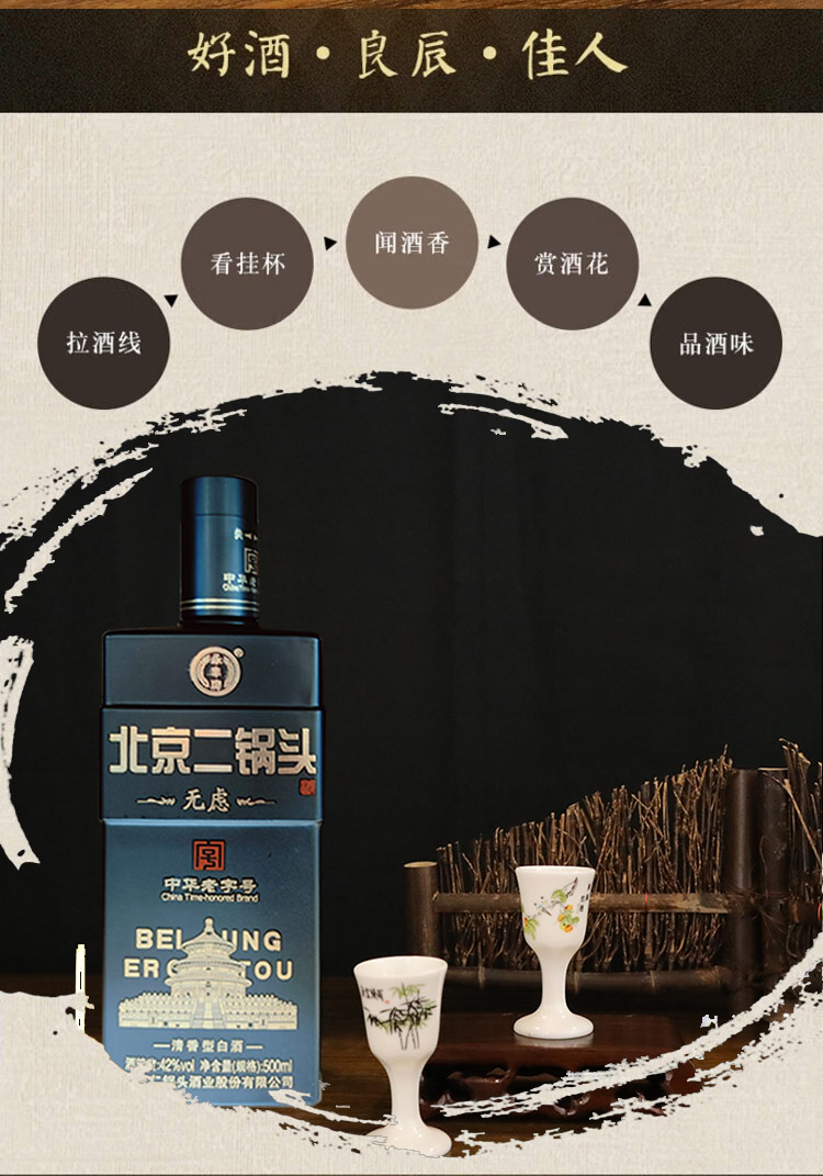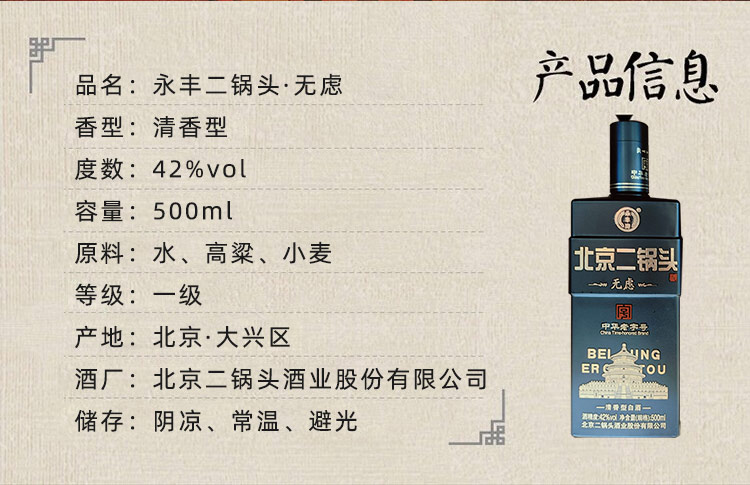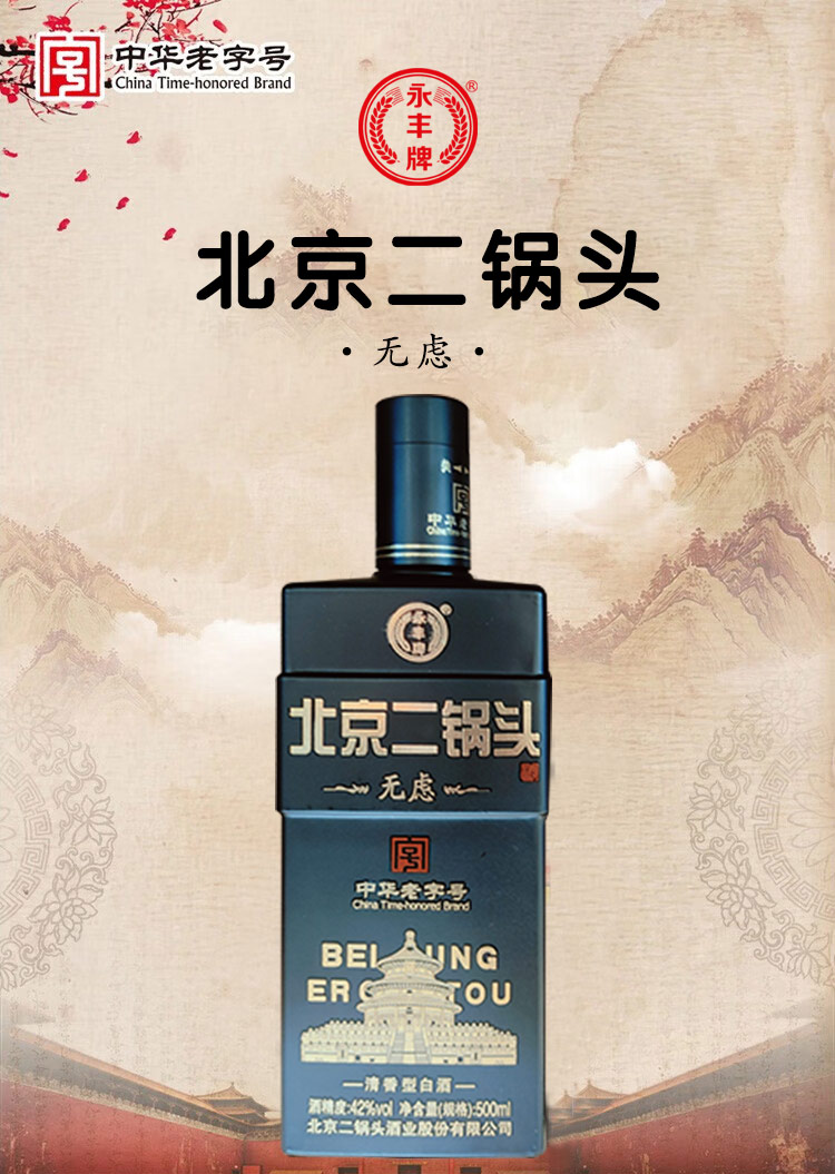 永丰二锅头无虑(黑)42度 清香型白酒 纯粮酿造 500ml*12瓶 整箱