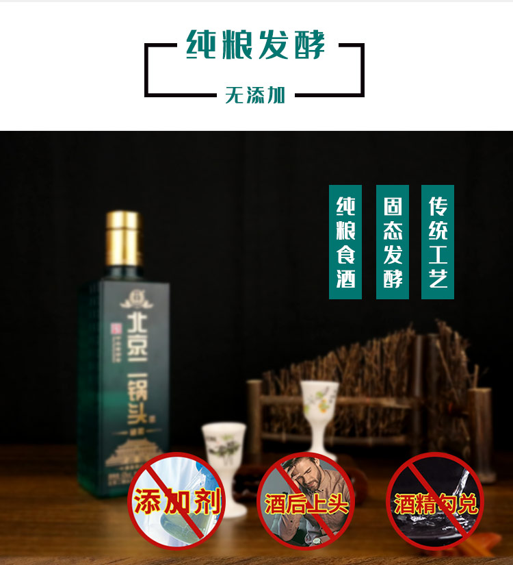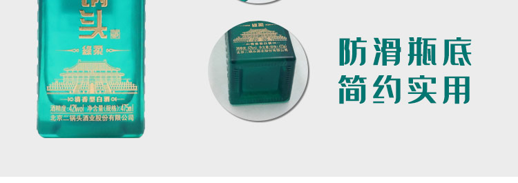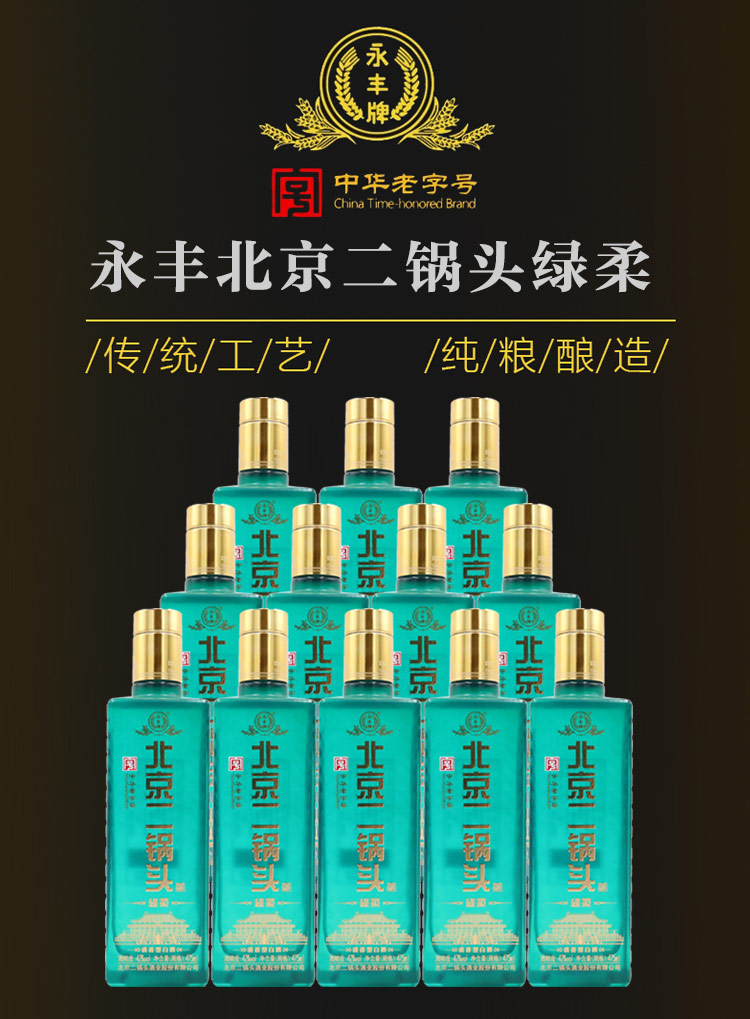 永丰北京二锅头 绿柔 42度 清香型白酒 纯粮酿造 475ml*12瓶 整箱