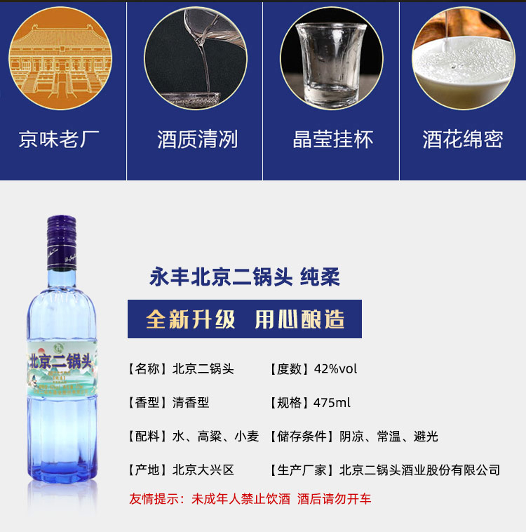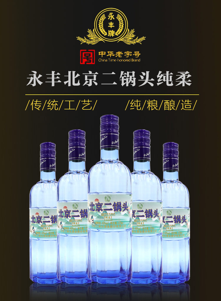 永丰北京二锅头 纯柔 42度 清香型白酒 475ml*12瓶 整箱