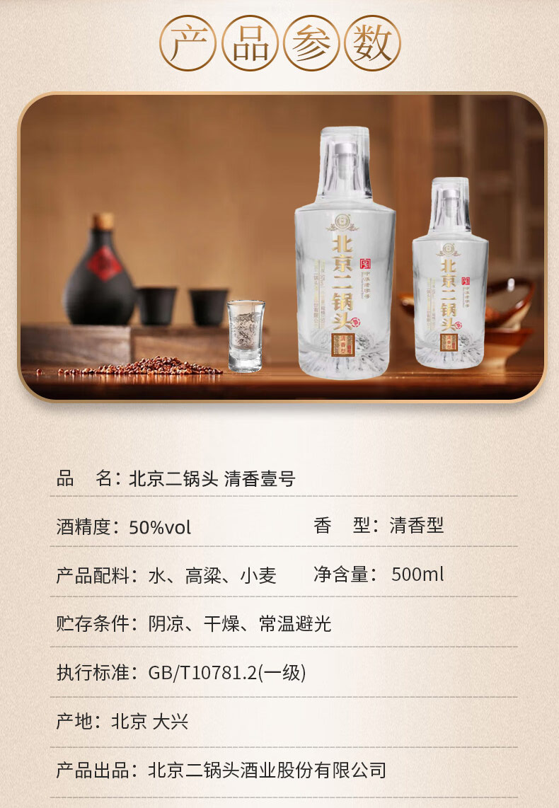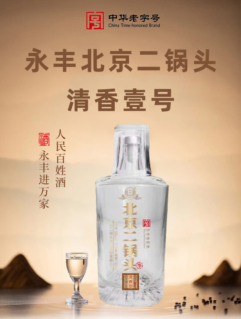 永丰北京二锅头 清香壹号 50度 清香型白酒 纯粮酿造 500ml*6瓶 整箱