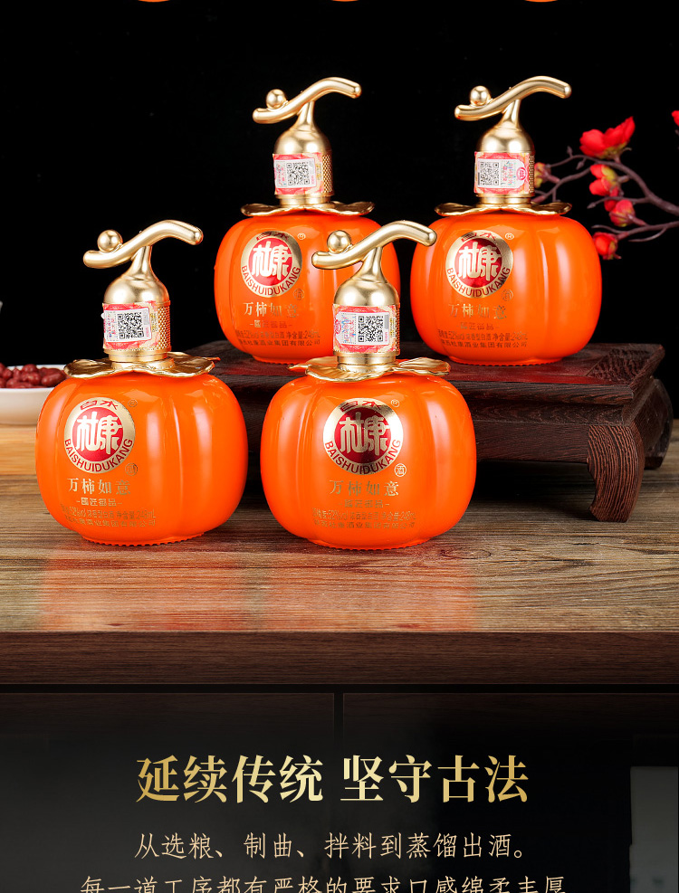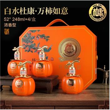 白水杜康 万柿如意 52度 浓香型白酒 248ml*4瓶*3盒 整箱