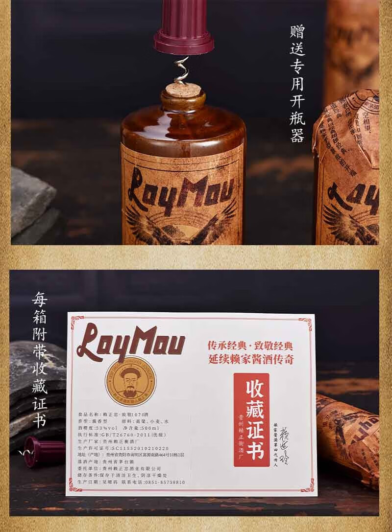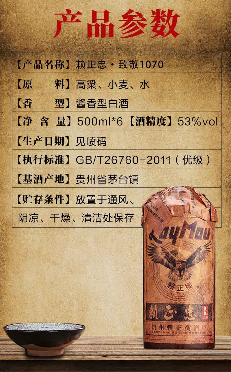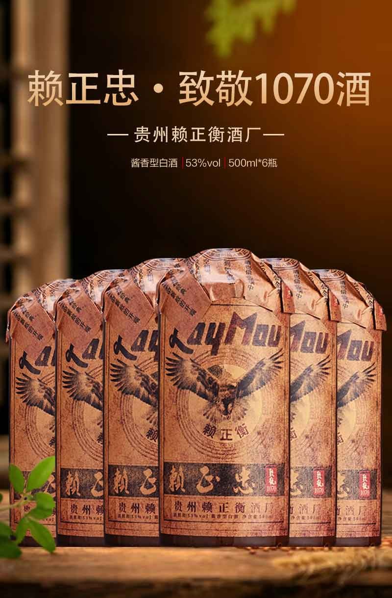 贵州茅台镇 赖正忠 致敬1070 纪念酒 53度 酱香型白酒 500mL*6瓶 整箱