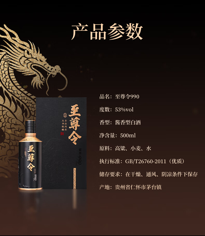 尊令酱酒 990 53%vol 酱香型白酒 贵州纯粮食茅香陈酿 500mL*6瓶 整箱装