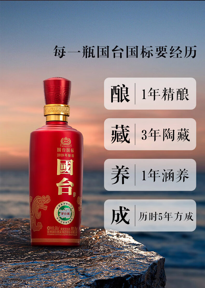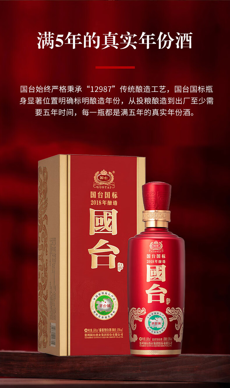 台 国标酒 酱香型白酒 53度 500ml*6瓶整箱装 2018年酿造 真实年份