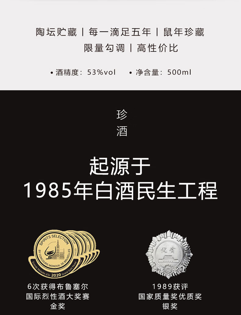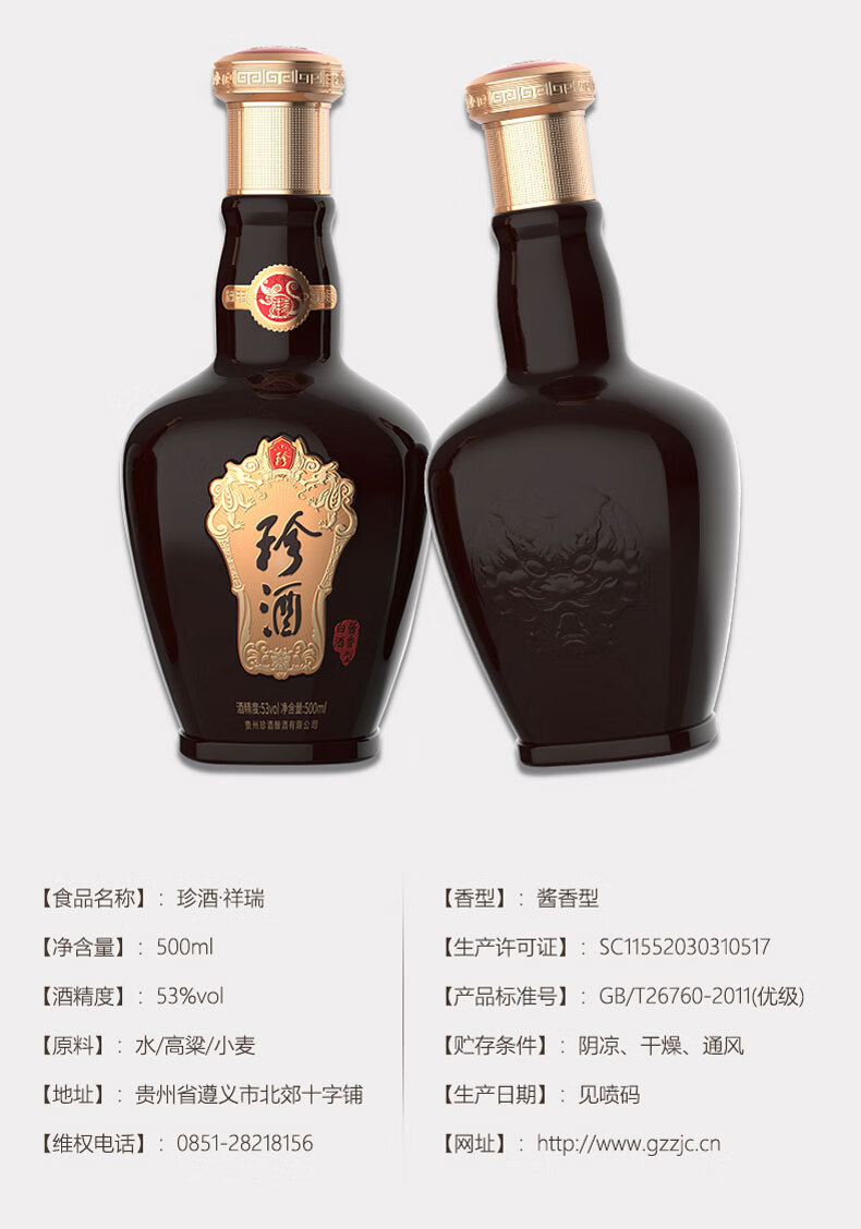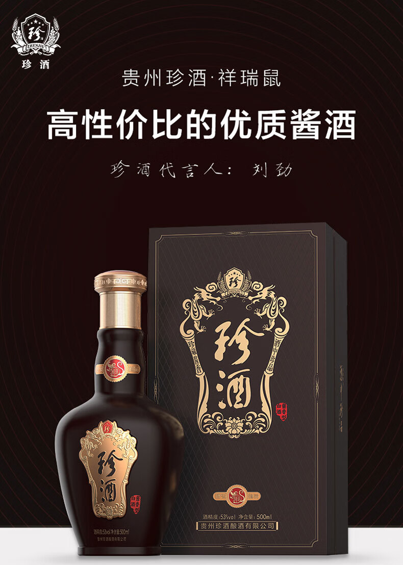 珍酒祥瑞 生肖鼠 生肖纪念收藏酒 53度 酱香型白酒 500ML*6瓶 整箱
