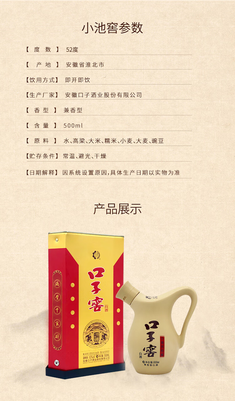 口子窖 小池窖特酿 52度 兼香型白酒 口子酒 送礼宴请 500ml*6瓶 整箱装