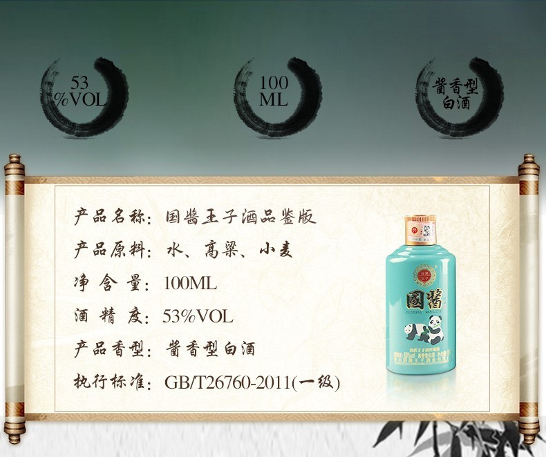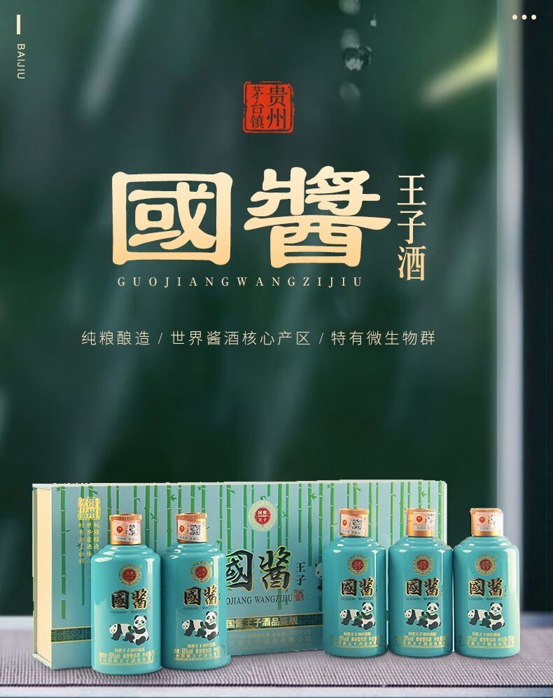 贵州茅台镇 国酱王子 品鉴版 53度 酱香型白酒 收藏送礼白酒 100ml*5瓶*6盒 整箱