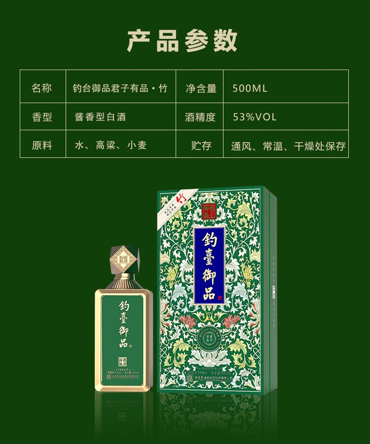 钓台御品 梅兰竹菊系列 竹 53度 酱香型白酒 白酒纯粮酒 500m*6瓶 整箱