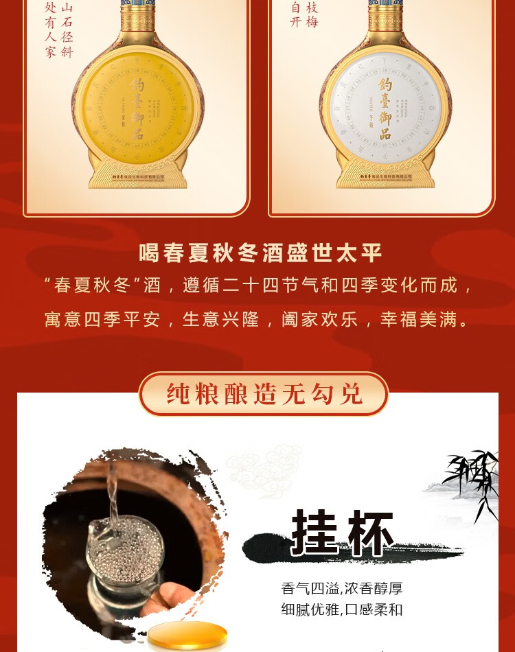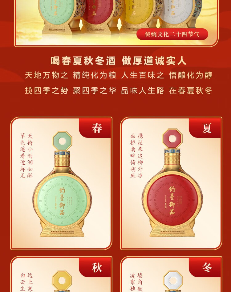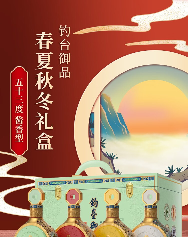 钓台御品 春夏秋冬 酱香型白酒 53度 500ml*4瓶 礼盒
