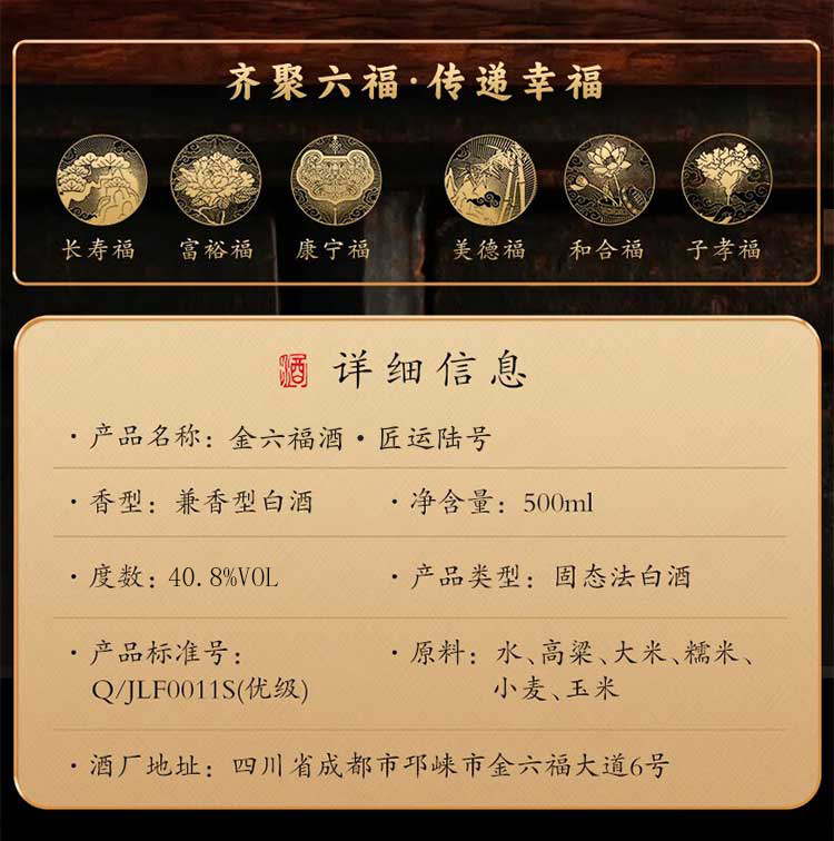 金六福 匠运陆号 40.8度 兼香型白酒 500ml*6 整箱装