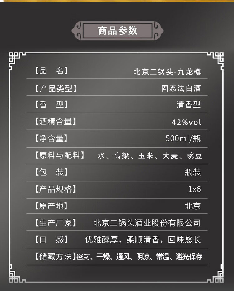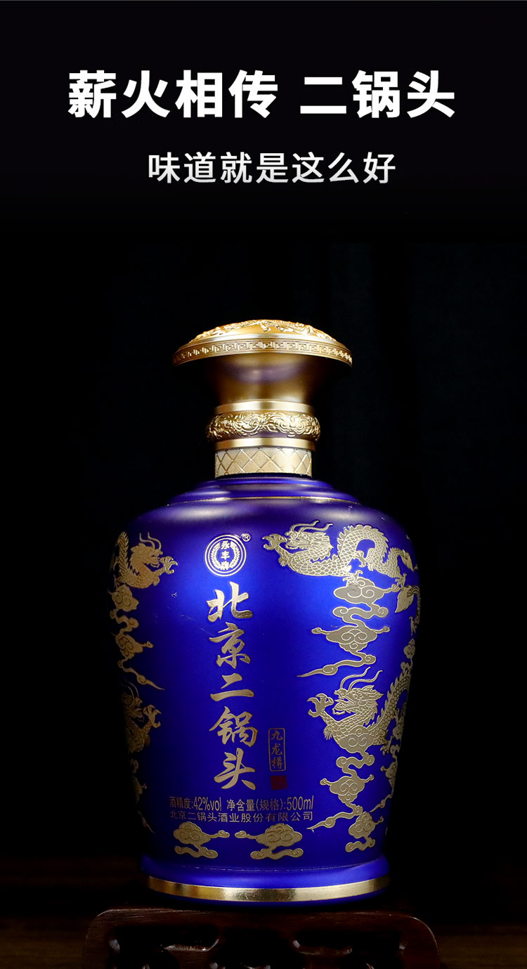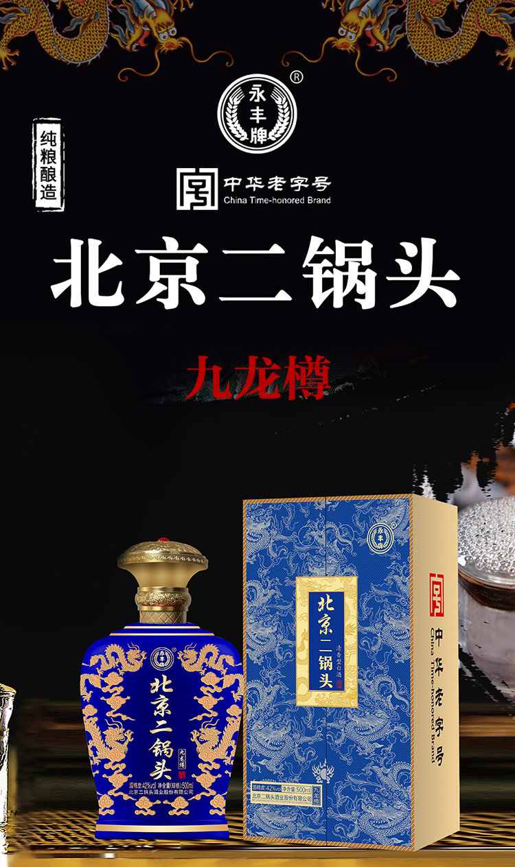 永丰 北京二锅头 九龙樽 蓝 清香型白酒 42度 500ml*6瓶 整箱
