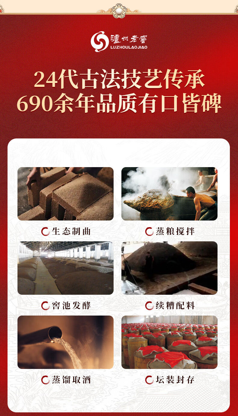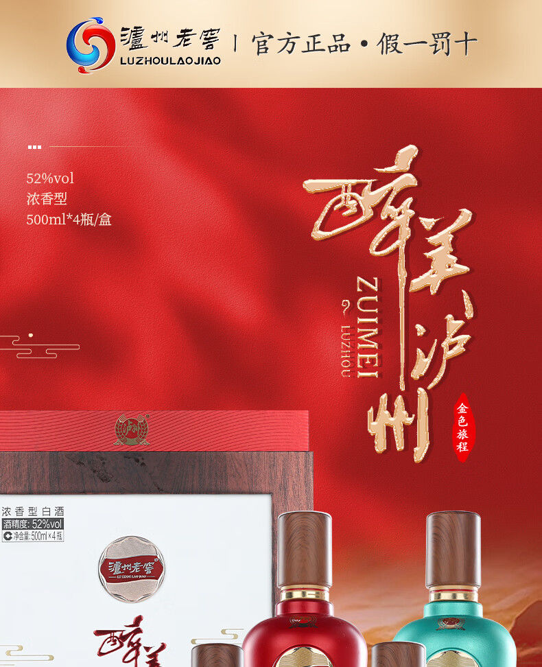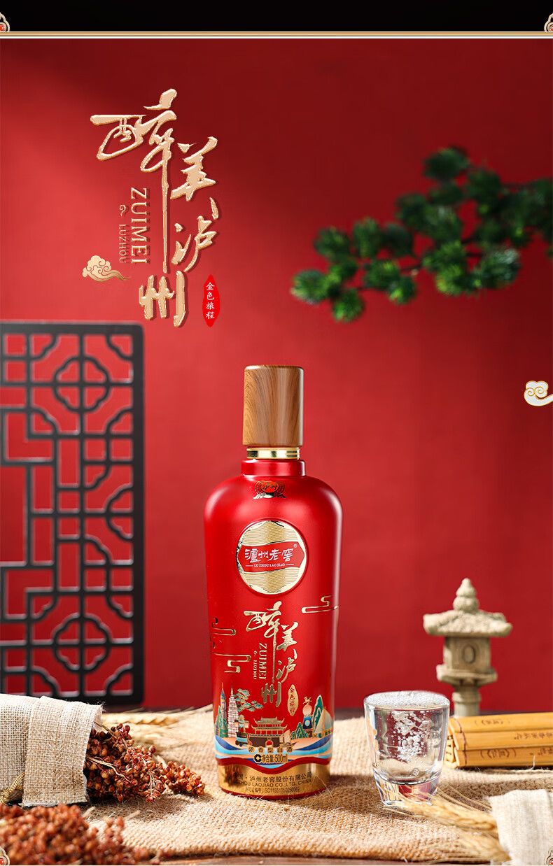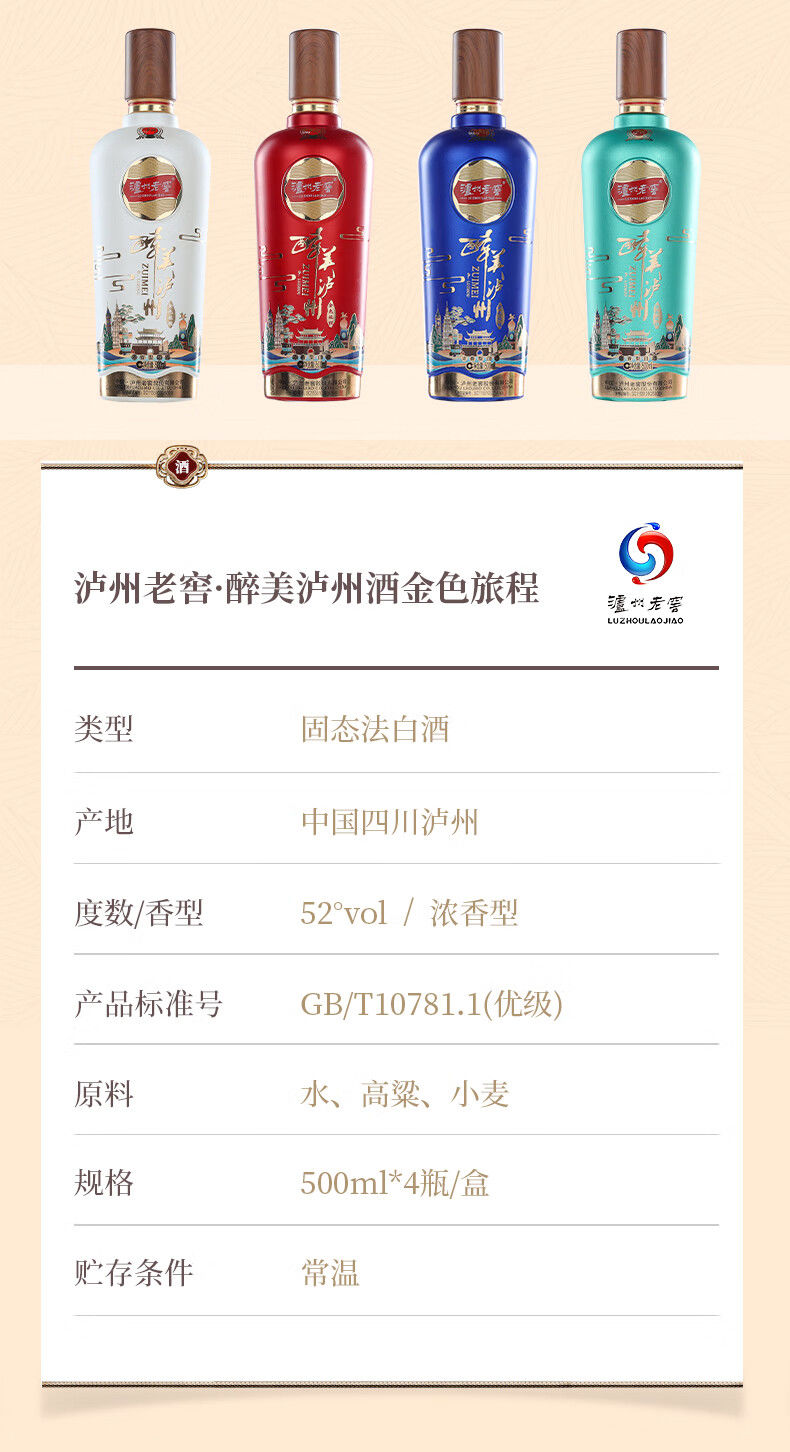 泸州老窖醉美泸州酒金色旅程 浓香型52度纯粮食酿造白酒 500ml*4瓶*2盒 整箱