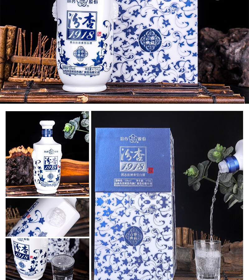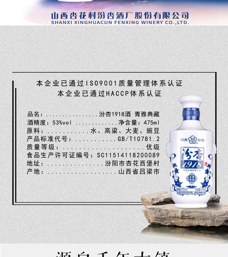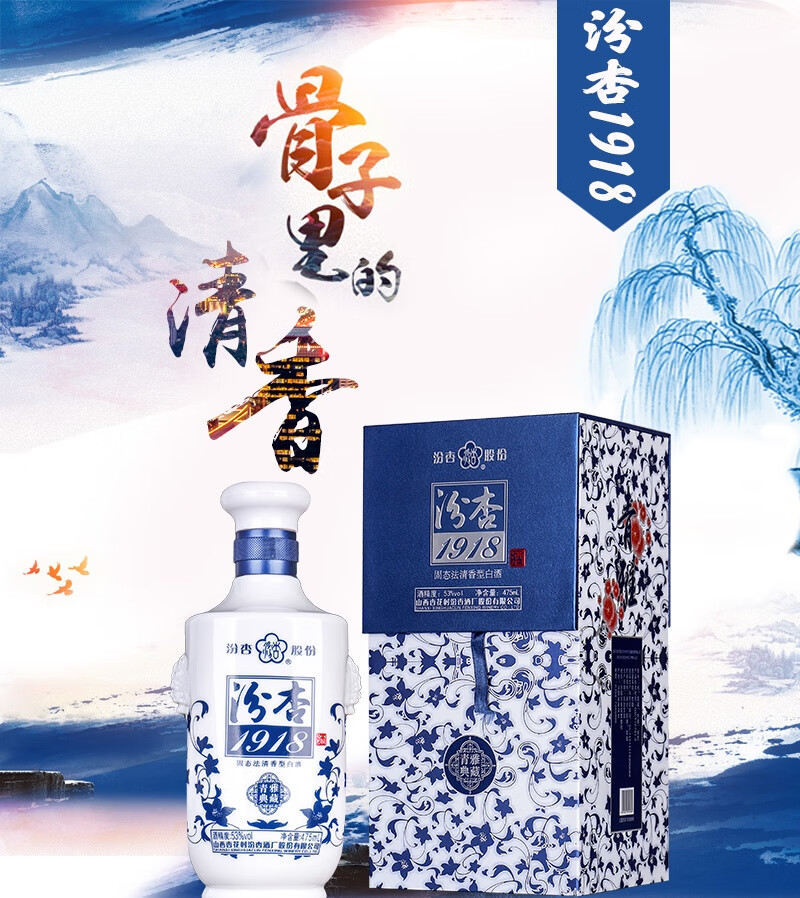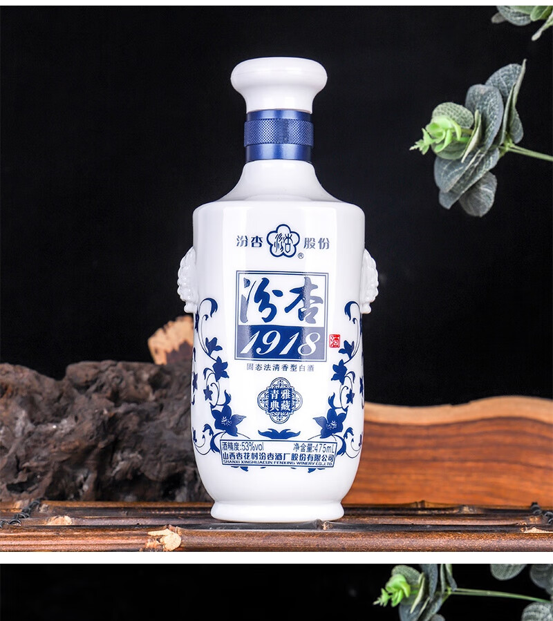 汾杏(FENXING)1918青雅典藏 53度 清香型475ml*6瓶 整箱