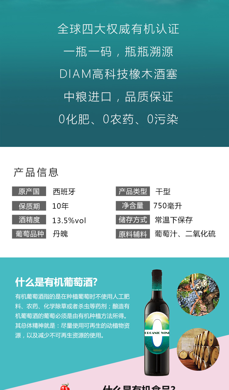 吉卡斯(JECUPS) 格云淳品0号有机干红葡萄酒西班牙原瓶进口 750ml*6支 整箱
