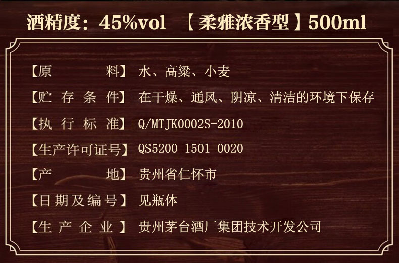 茅台集团 茅台醇窖藏12 2012年老酒 45度 浓香型白酒 500ml*6瓶 整箱