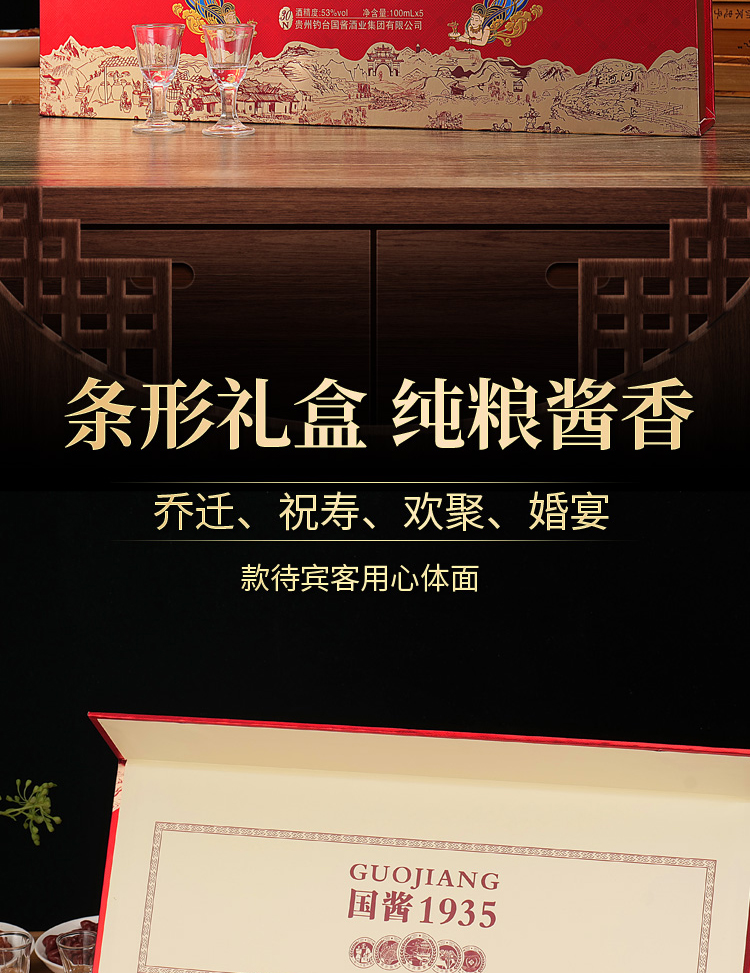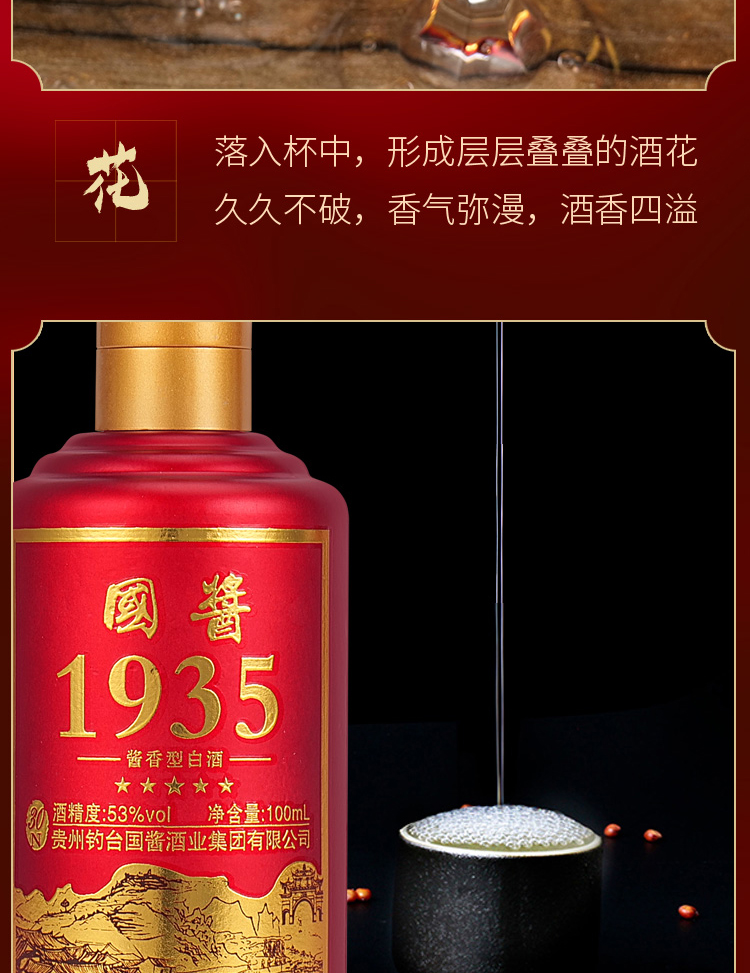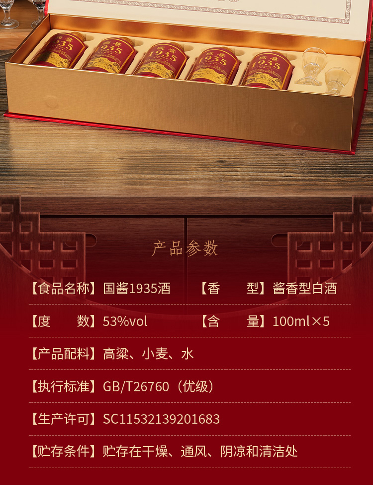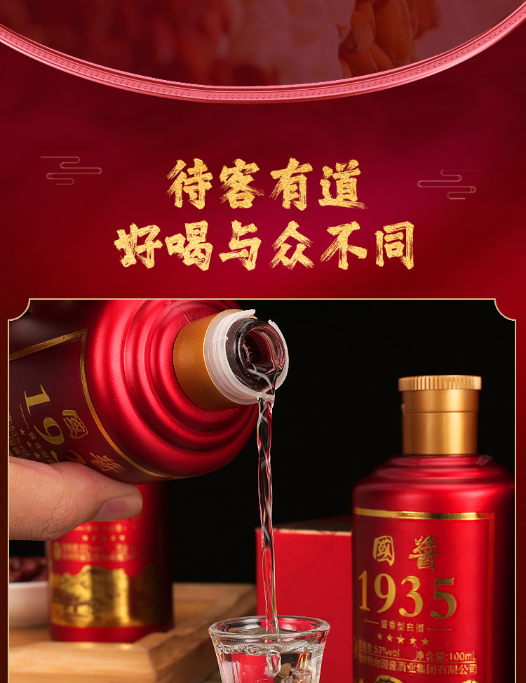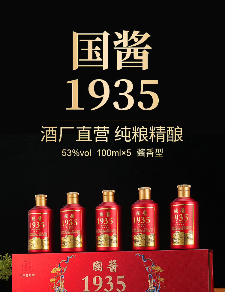 国酱1935 酱香型白酒 53度 纯粮食白酒 100ml*5瓶品鉴小酒
