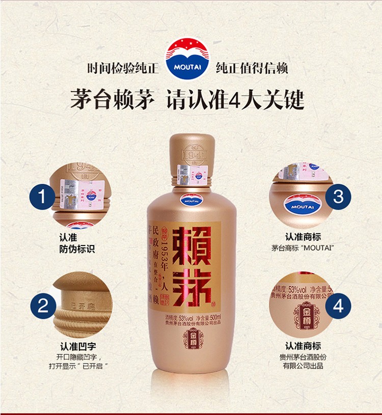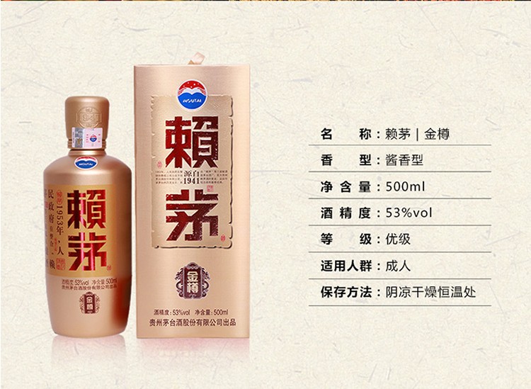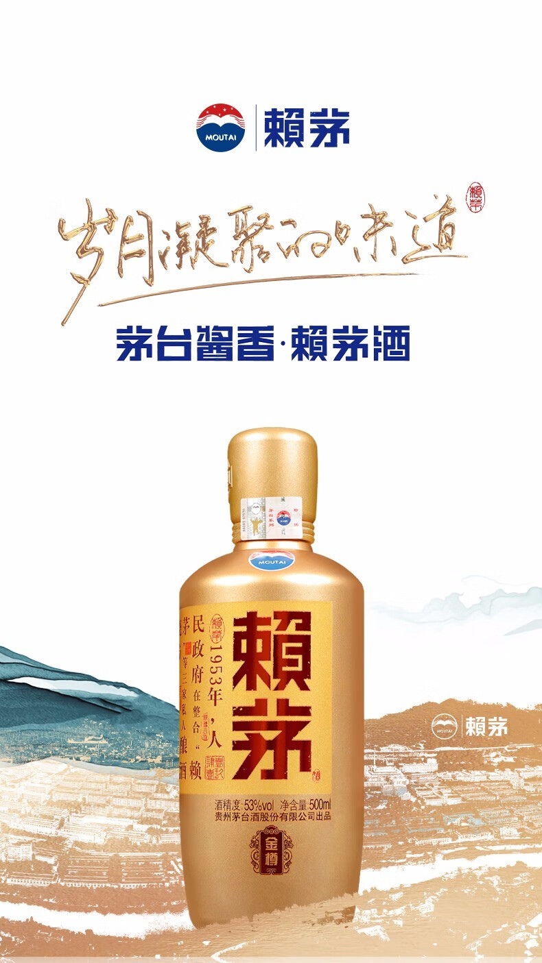 茅台 赖茅 53度酱香型白酒 赖茅金樽 500ml*6瓶 整箱