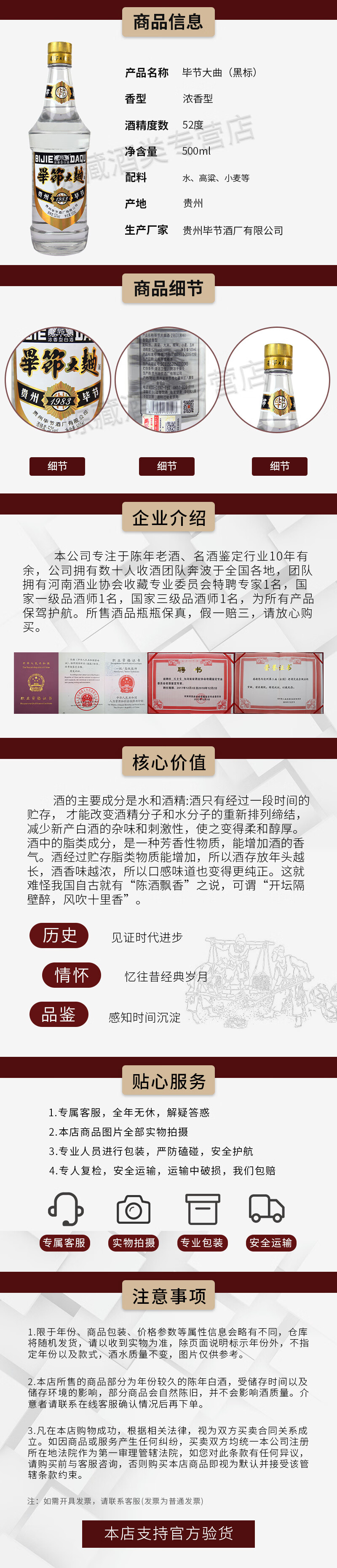 毕节大曲1983黑标白酒 贵州老八大酒 整箱浓香型52度黔派浓香纯粮食酒 500ml*6瓶整箱装