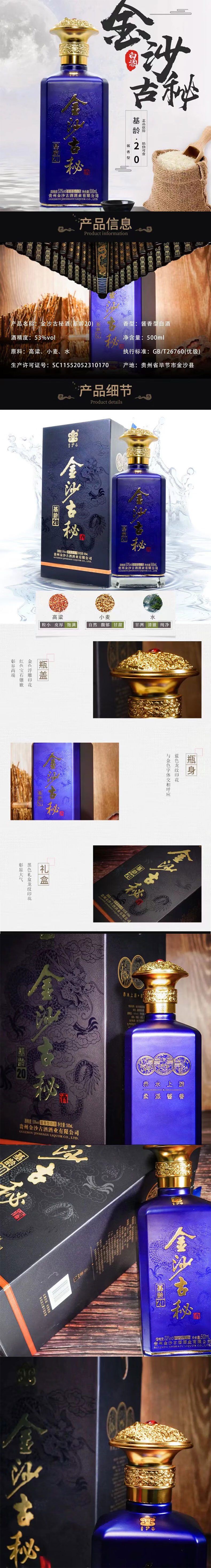 金沙古 金沙古秘 基龄20 53度 酱香型白酒 粮食酒 收藏送礼商务宴请酒水 500ml*6瓶 整箱装