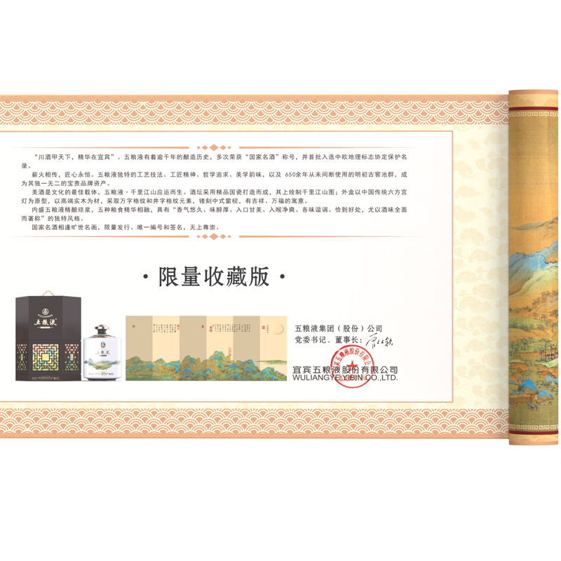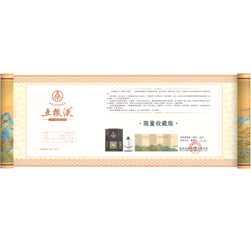 五粮液 浓香型高度白酒 收藏商务送礼酒水 五粮液千里江山 52度 1.5L