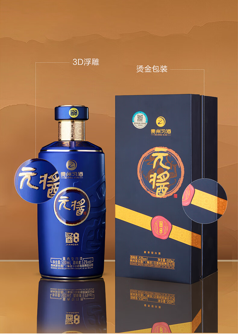 贵州习酒 习酒元酱 酱8 53度 酱香型白酒 礼盒送礼 500ml*6瓶 整箱