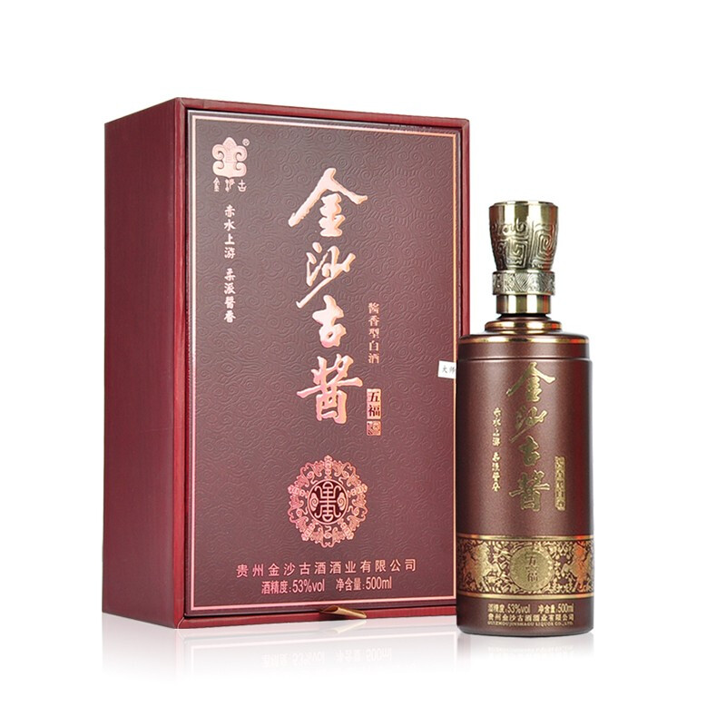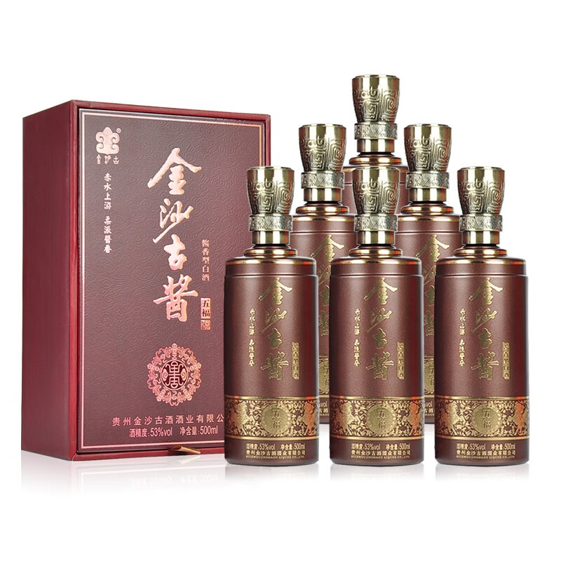金沙古贵州 金沙古酱 五福酒 53度 酱香型白酒 年货送礼宴请礼盒酒水 500ml*6瓶 整箱