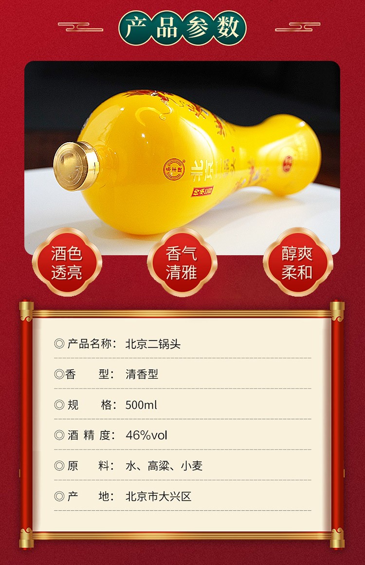 永丰牌 北京二锅头白酒 大师手酿 纯粮酒 46度 清香型 500ml*6瓶 整箱