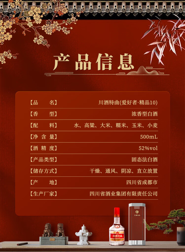 爱好者爱好者精品10 川酒特曲 浓香型 白酒 52度 500ml*6瓶 整箱