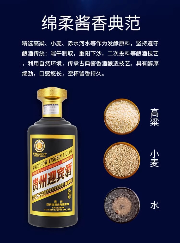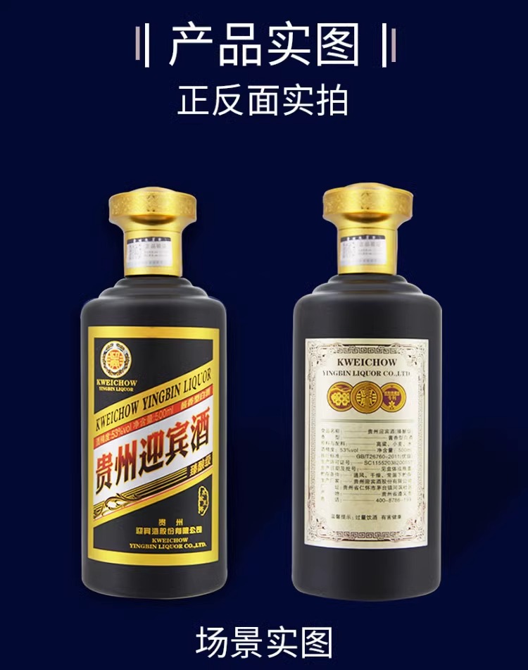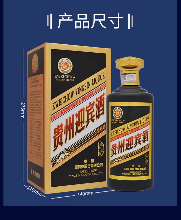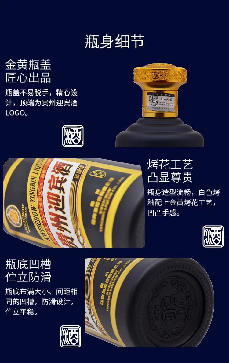 贵州迎宾酒 黑金至尊 53度 酱香型高度粮食整箱白酒 收藏聚会送礼佳品 6瓶*500ml
