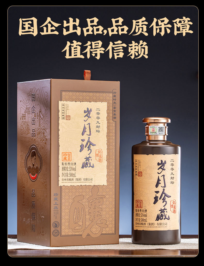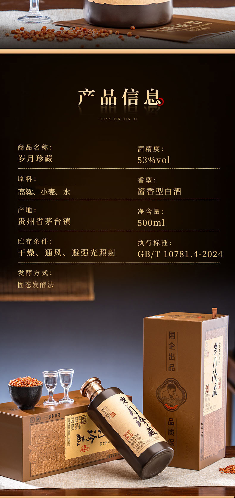 岁月珍藏 记忆美酒 53度 酱香型坤沙白酒 大师传承 工艺酿造 500mL*6瓶 整箱装