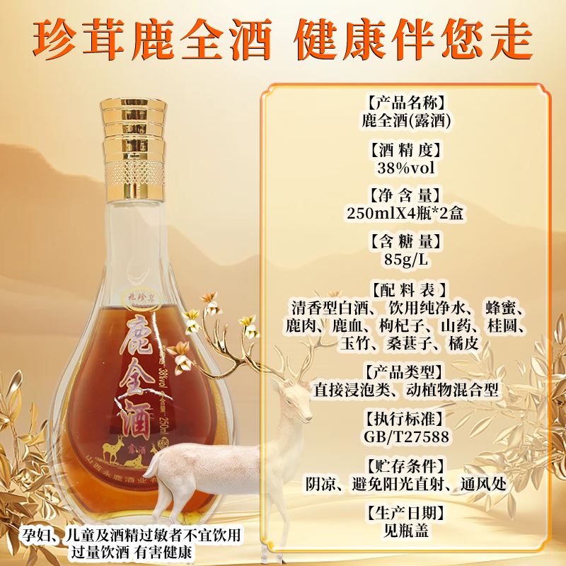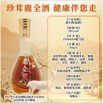 珍茸鹿全酒 露酒 38%VOL 250ml*4瓶*2盒 整箱装