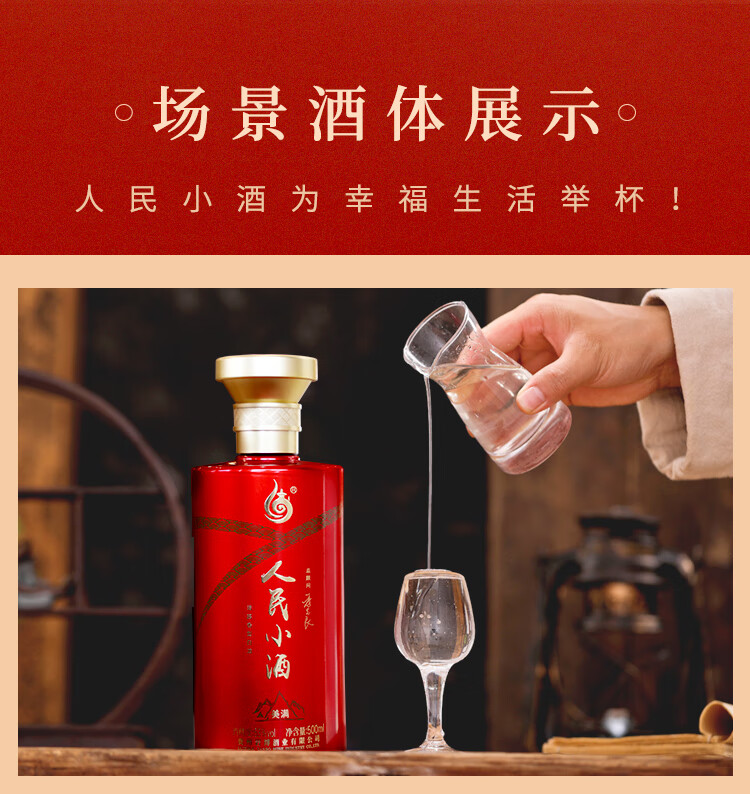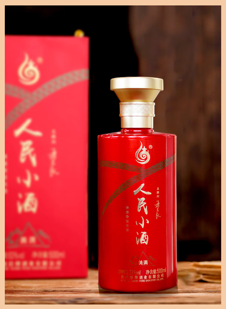 人民小酒美满 53度 清酱香型白酒 纯粮食酿造白酒 500mL*6瓶 整箱装