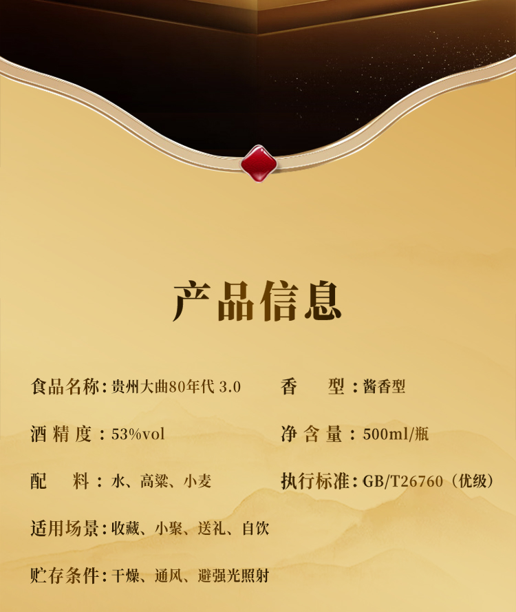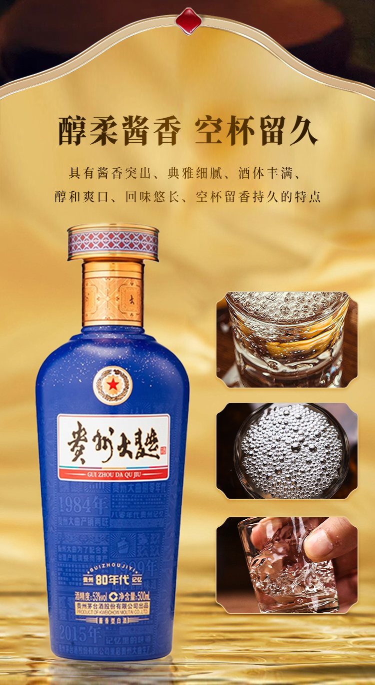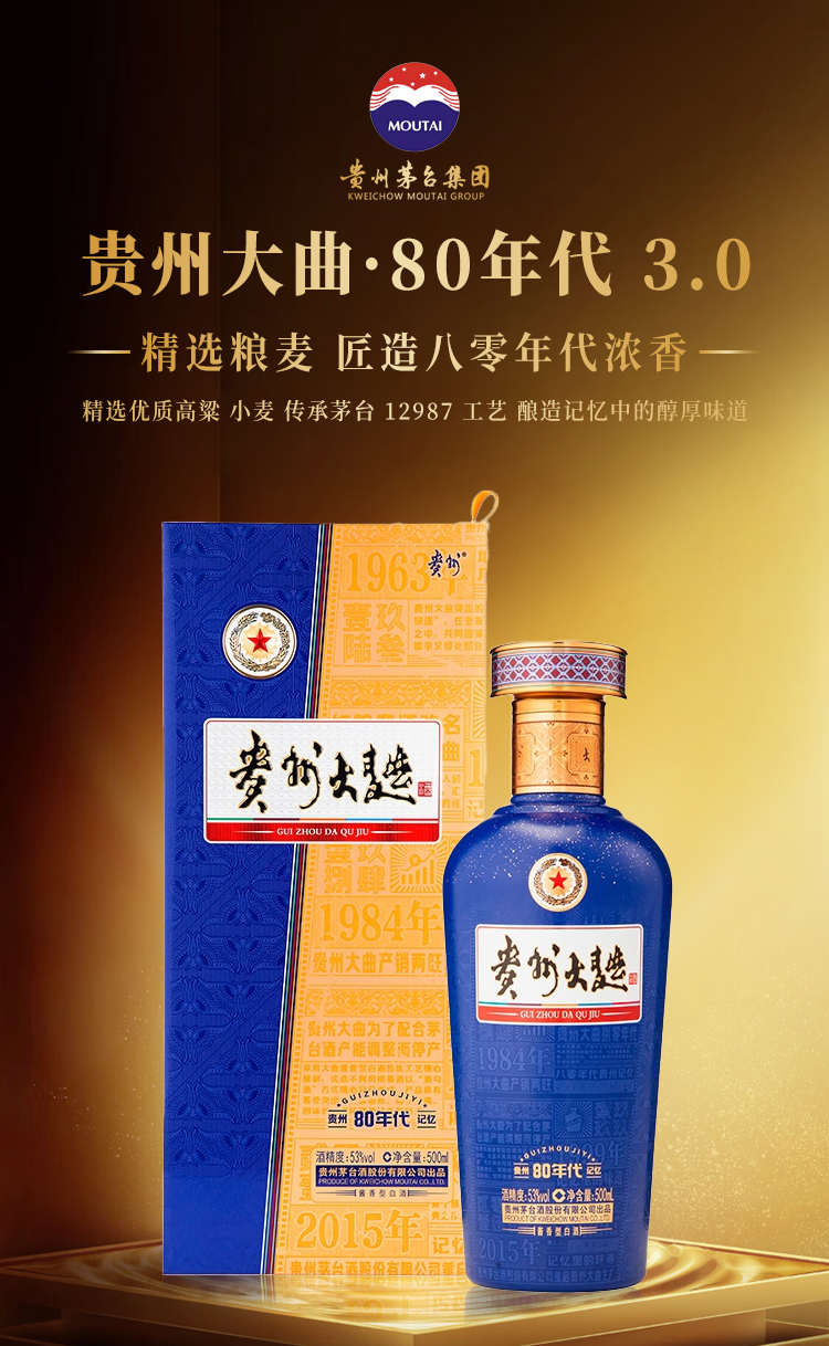 茅台贵州大曲80年代 3.0 53度 酱香型白酒 纯粮酿造白酒 自饮 送礼 宴请 摆柜 500mL*6瓶 整箱装