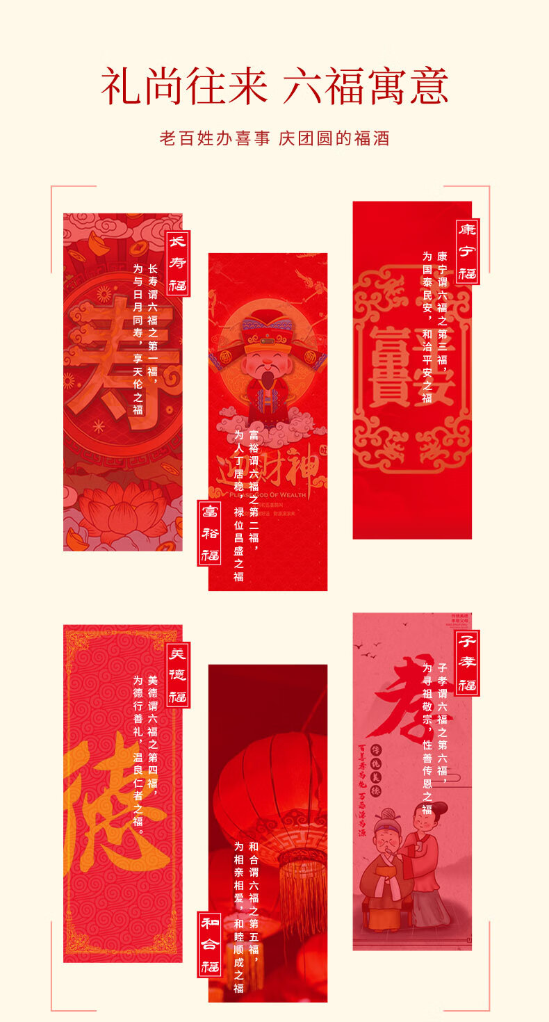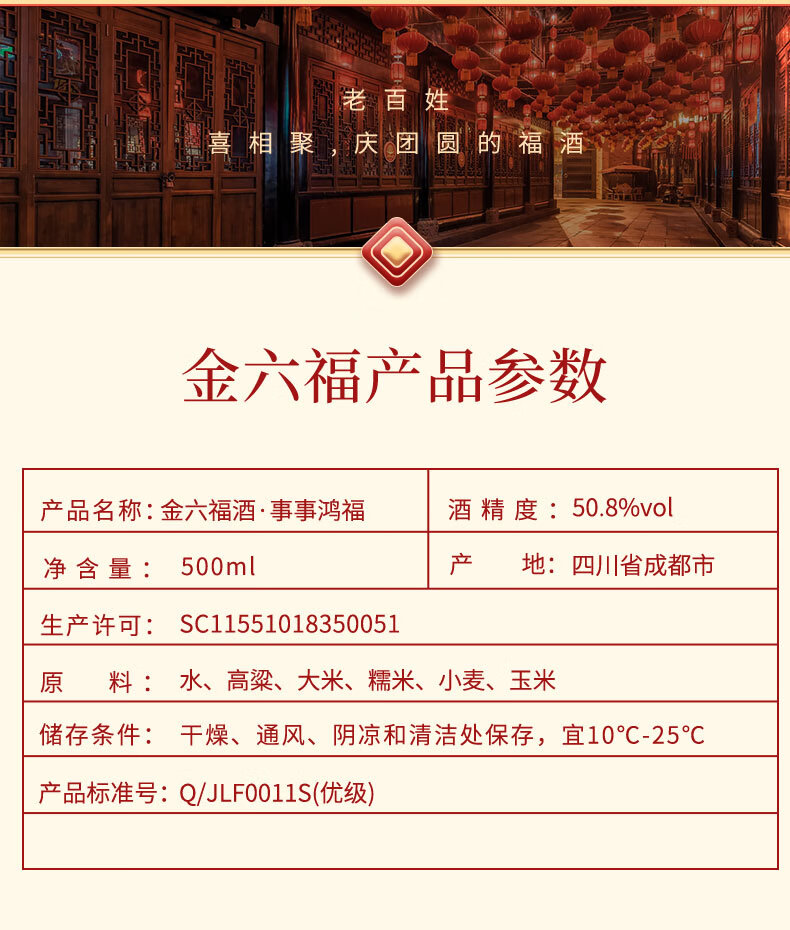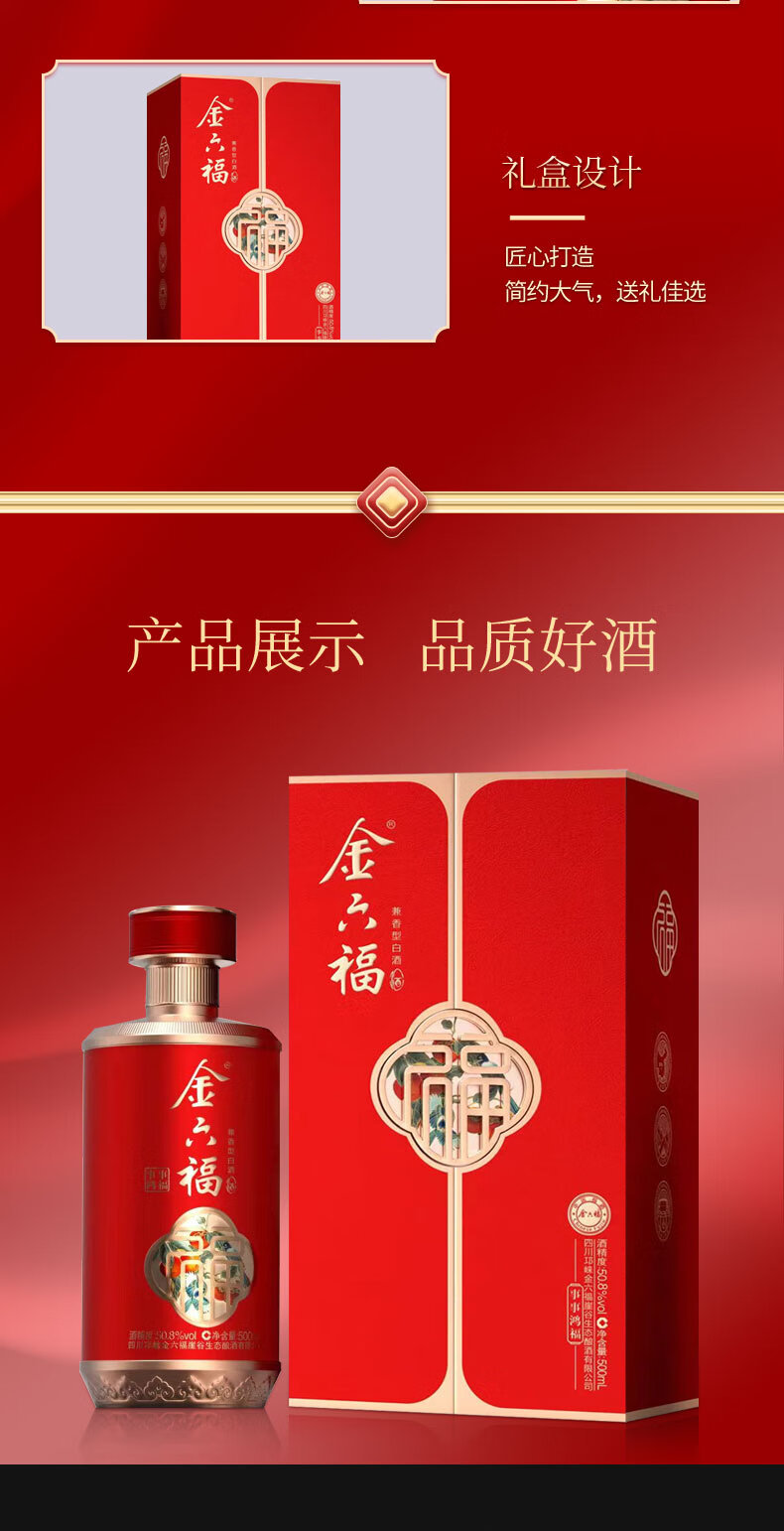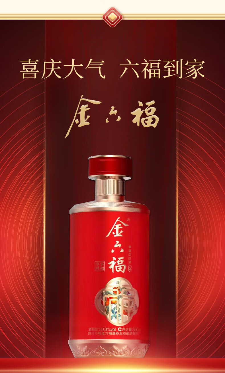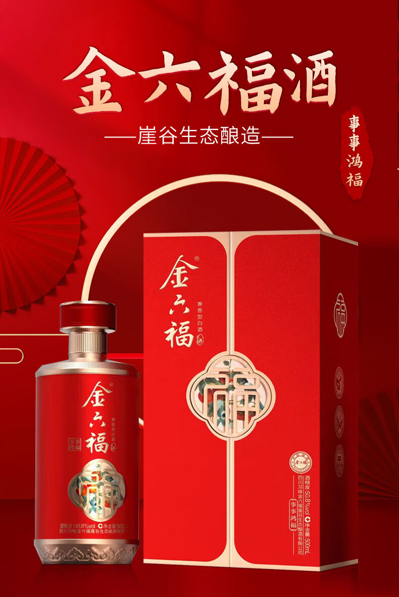 金六福事事鸿福 50.8度 浓清兼香型白酒 500ml*6瓶 整箱装 婚宴用酒 整箱6瓶