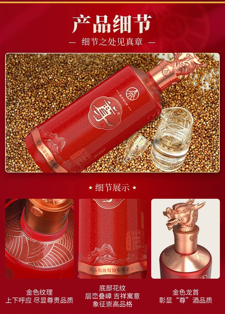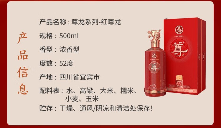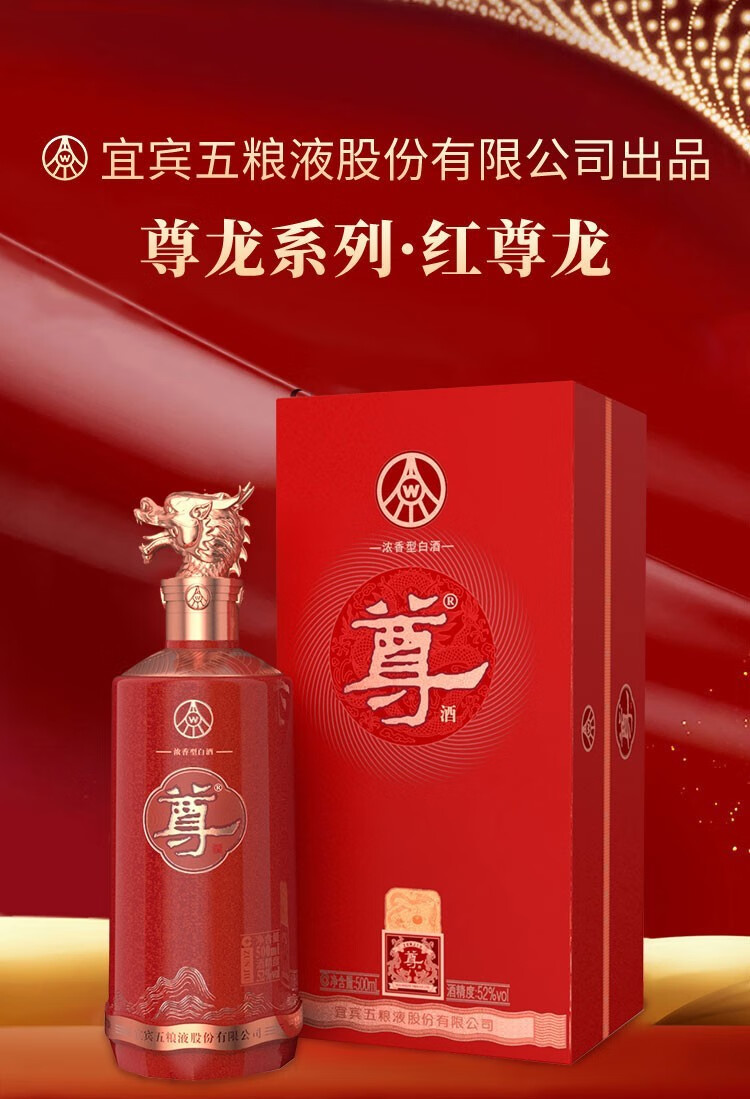 五粮液股份尊酒红尊龙52度浓香型白酒500ML*6瓶