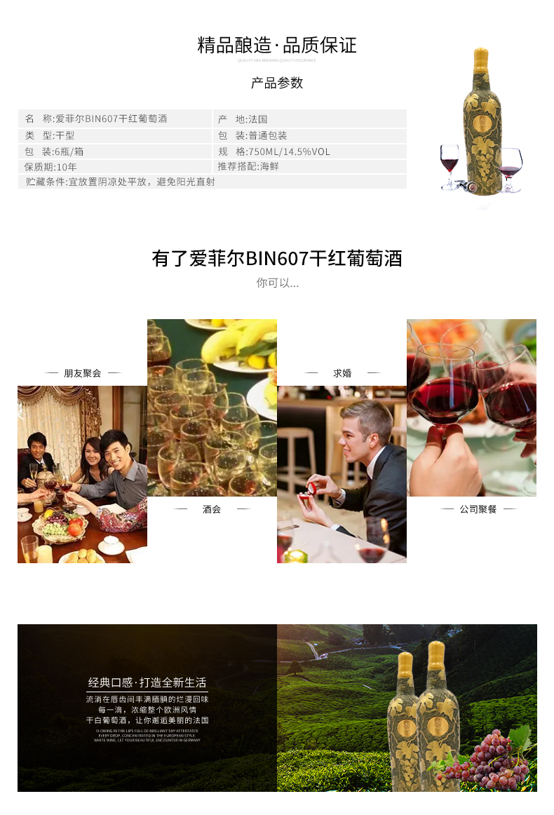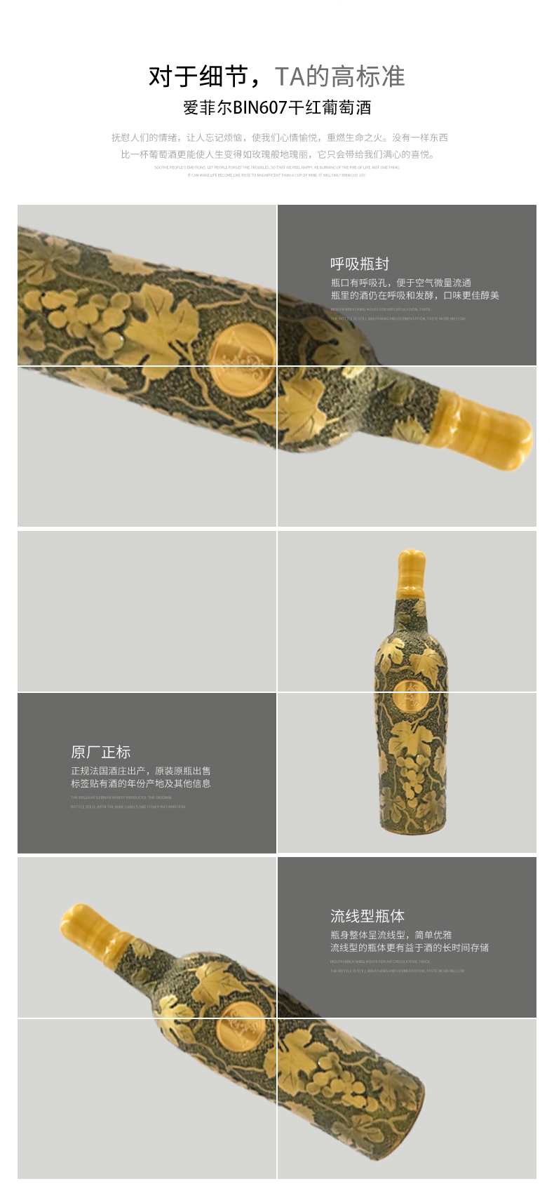 爱菲尔 BIN607新品 干红葡萄酒 法国进口 14.5%VOL 750ml*6支 整箱