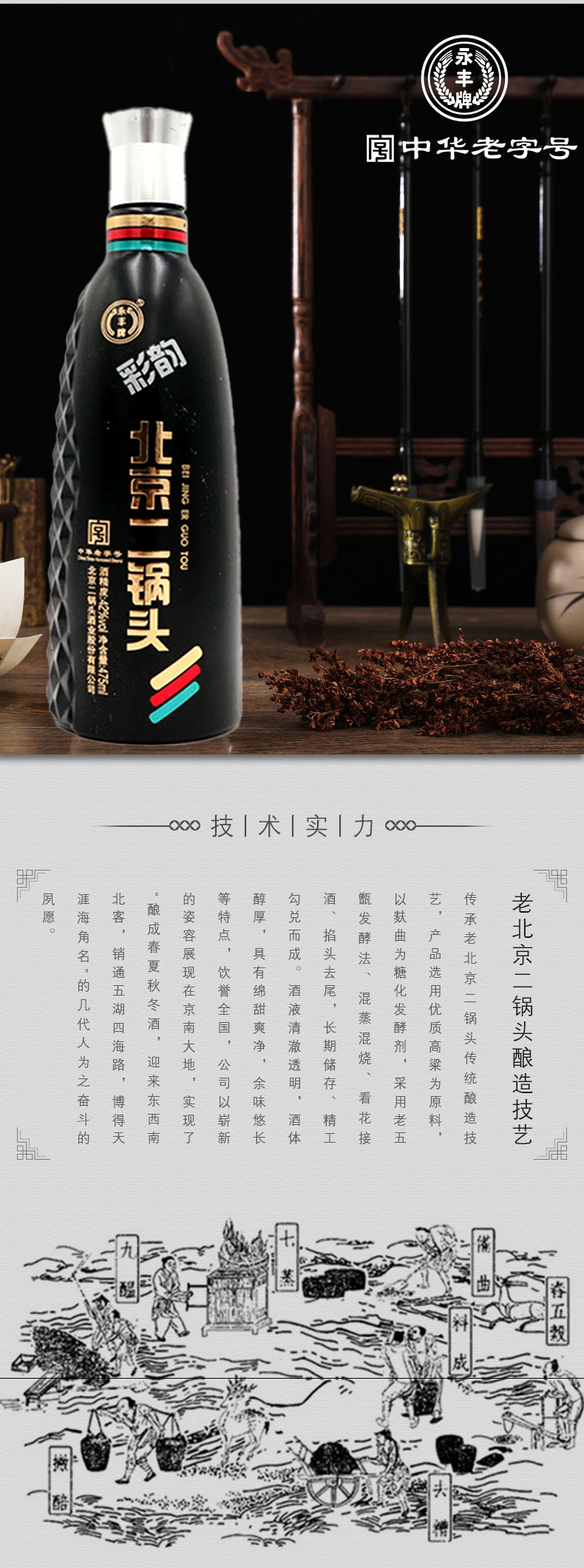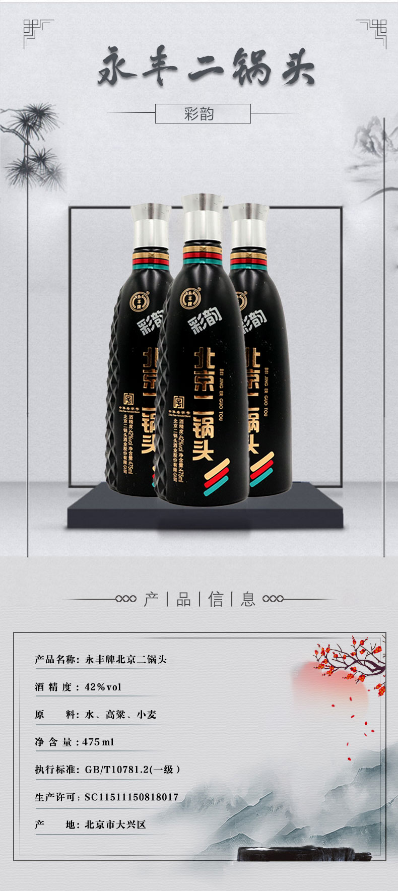 永丰北京二锅头 彩韵 42度 清香型白酒 纯粮酿造 光瓶 475ml*12瓶 整箱 新老随机
