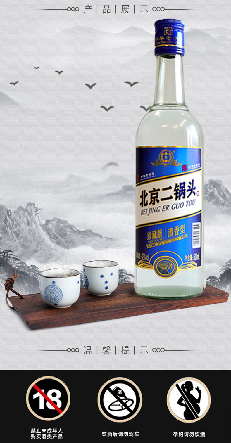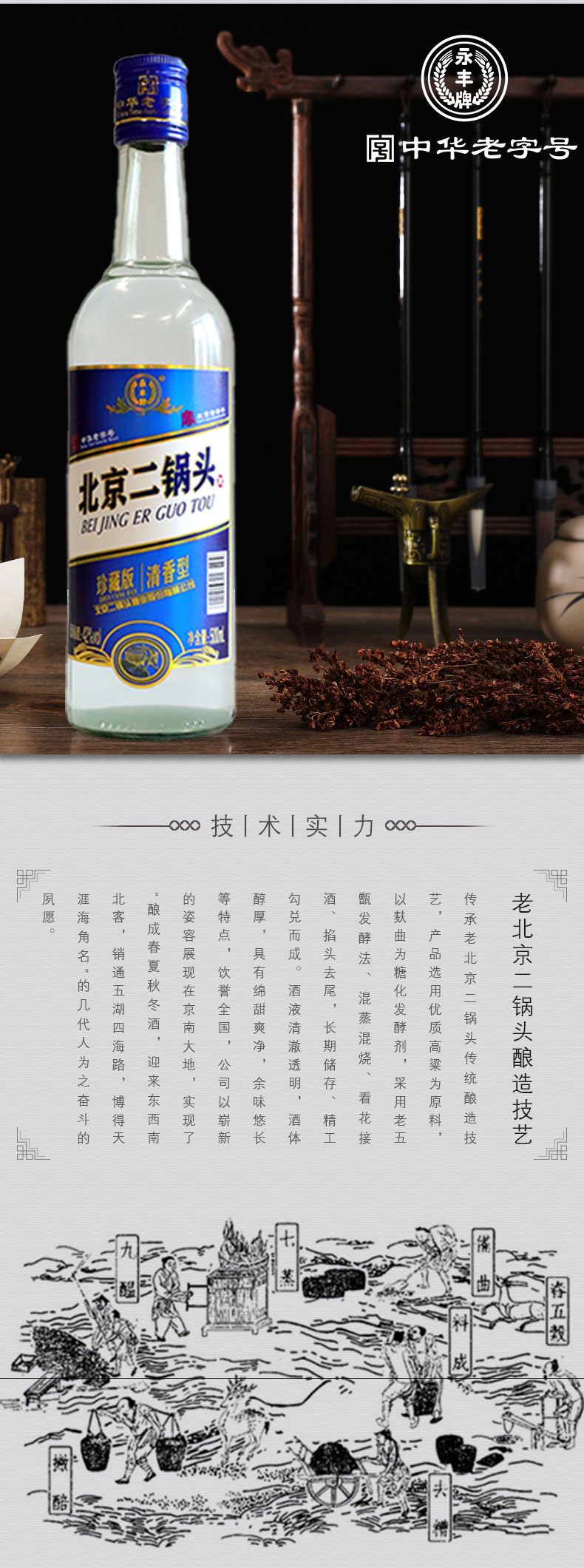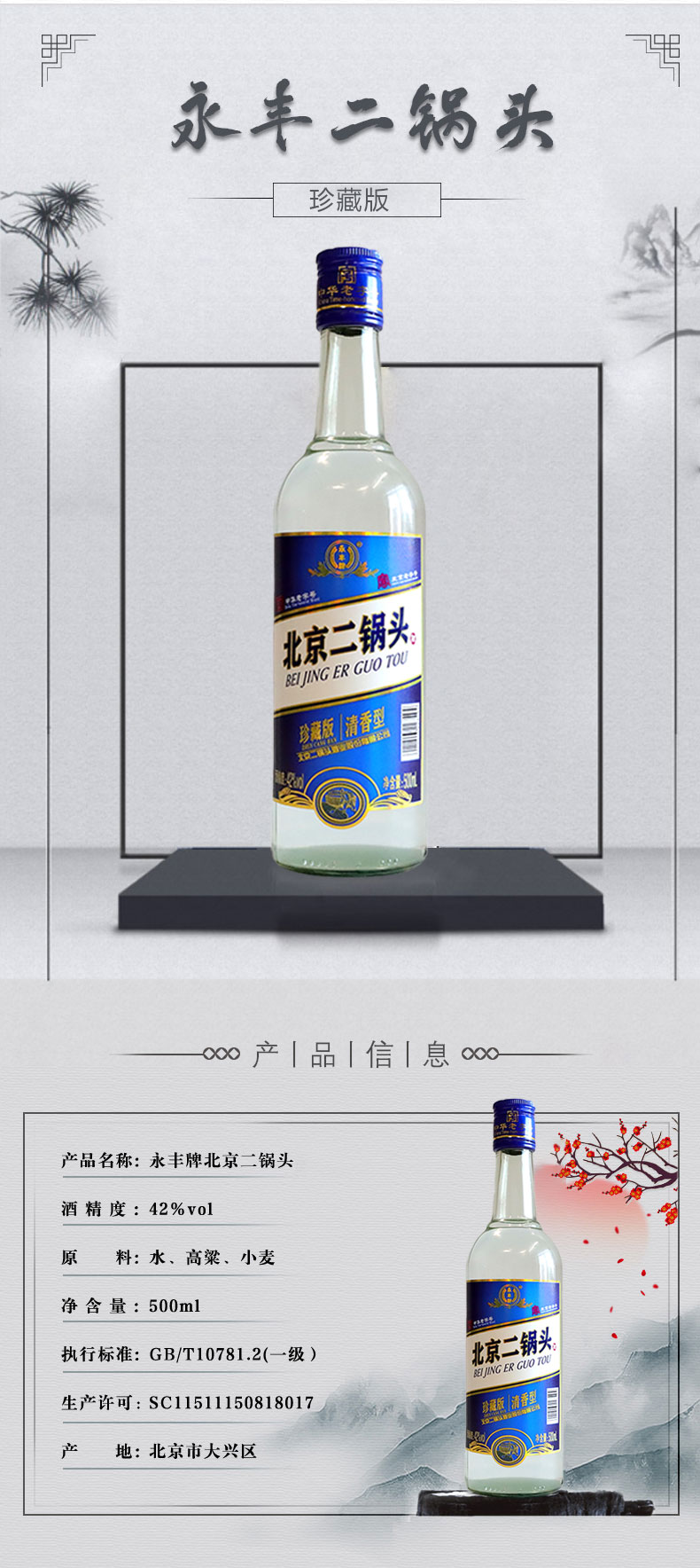 永丰北京二锅头 珍藏版 42度 清香型白酒 纯粮酿造 光瓶 500ml*12瓶 整箱