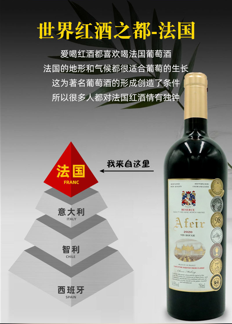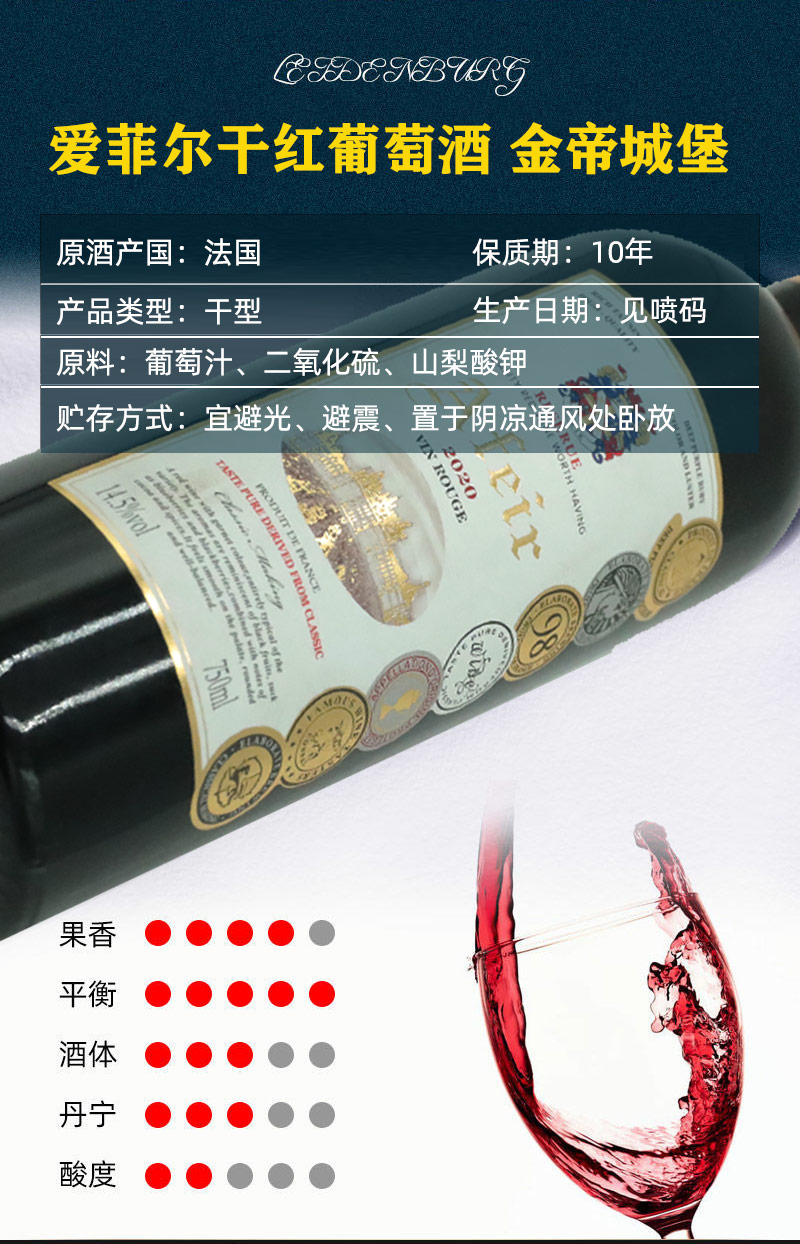 爱菲尔 金帝城堡 干红葡萄酒 法国进口 14.5%VOL 750ml*6支 整箱