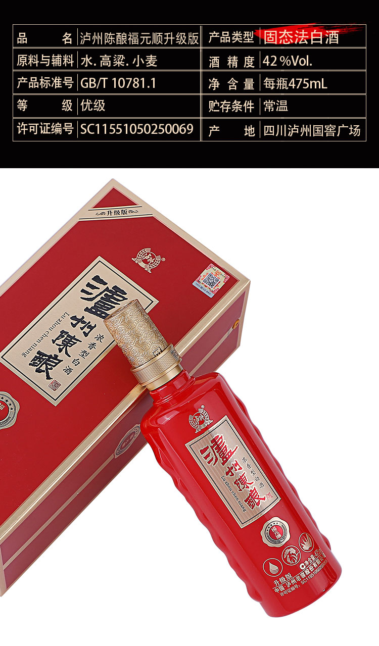 泸州老窖 福元顺 泸州陈酿 浓香型白酒 42度475ml 6瓶整箱
