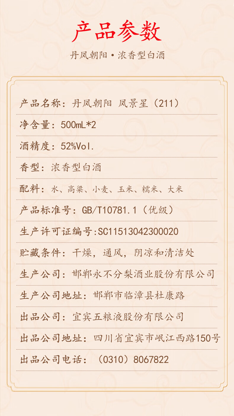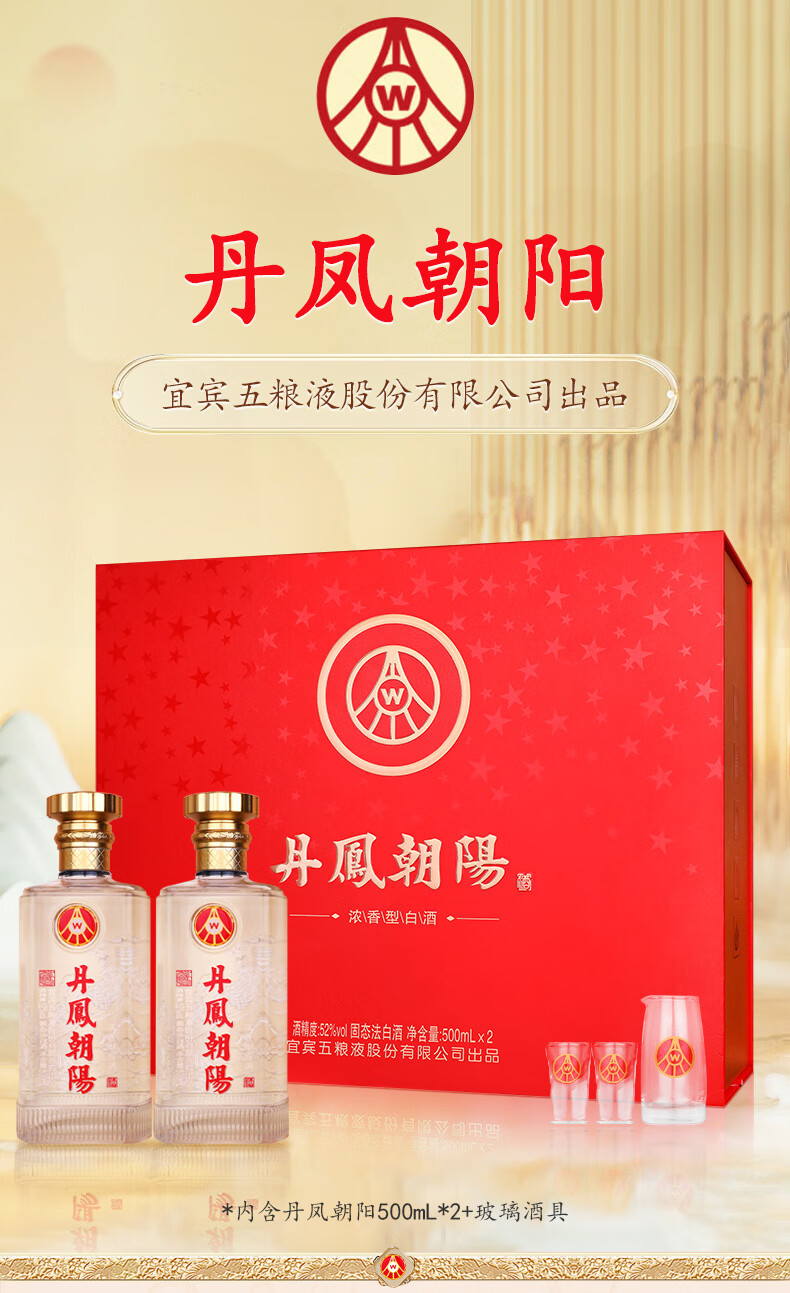 五粮液股份 丹凤朝阳凤景星 浓香型白酒 52度 500ml*2瓶*3盒 整箱
