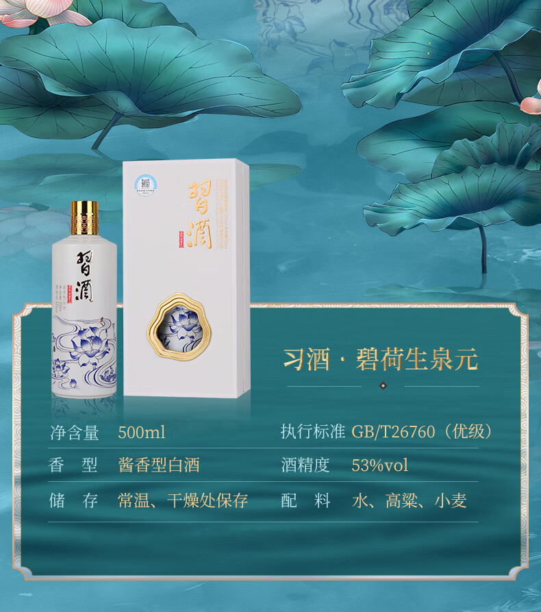 贵州习酒 53度 酱香型白酒 碧荷生泉 元 500ML*6 整箱装