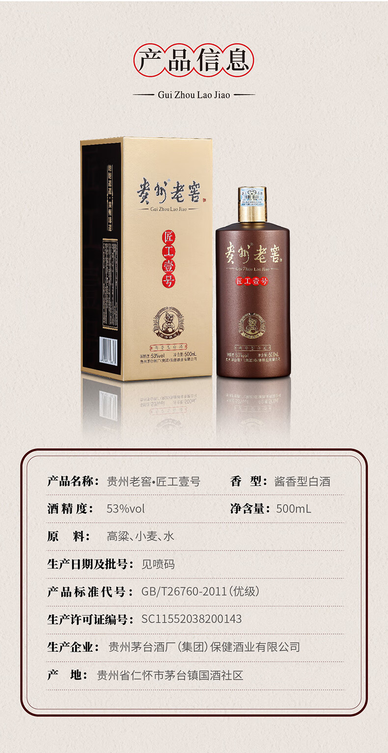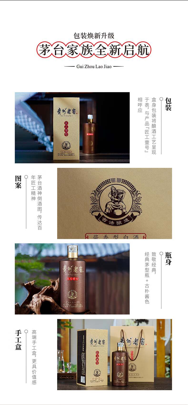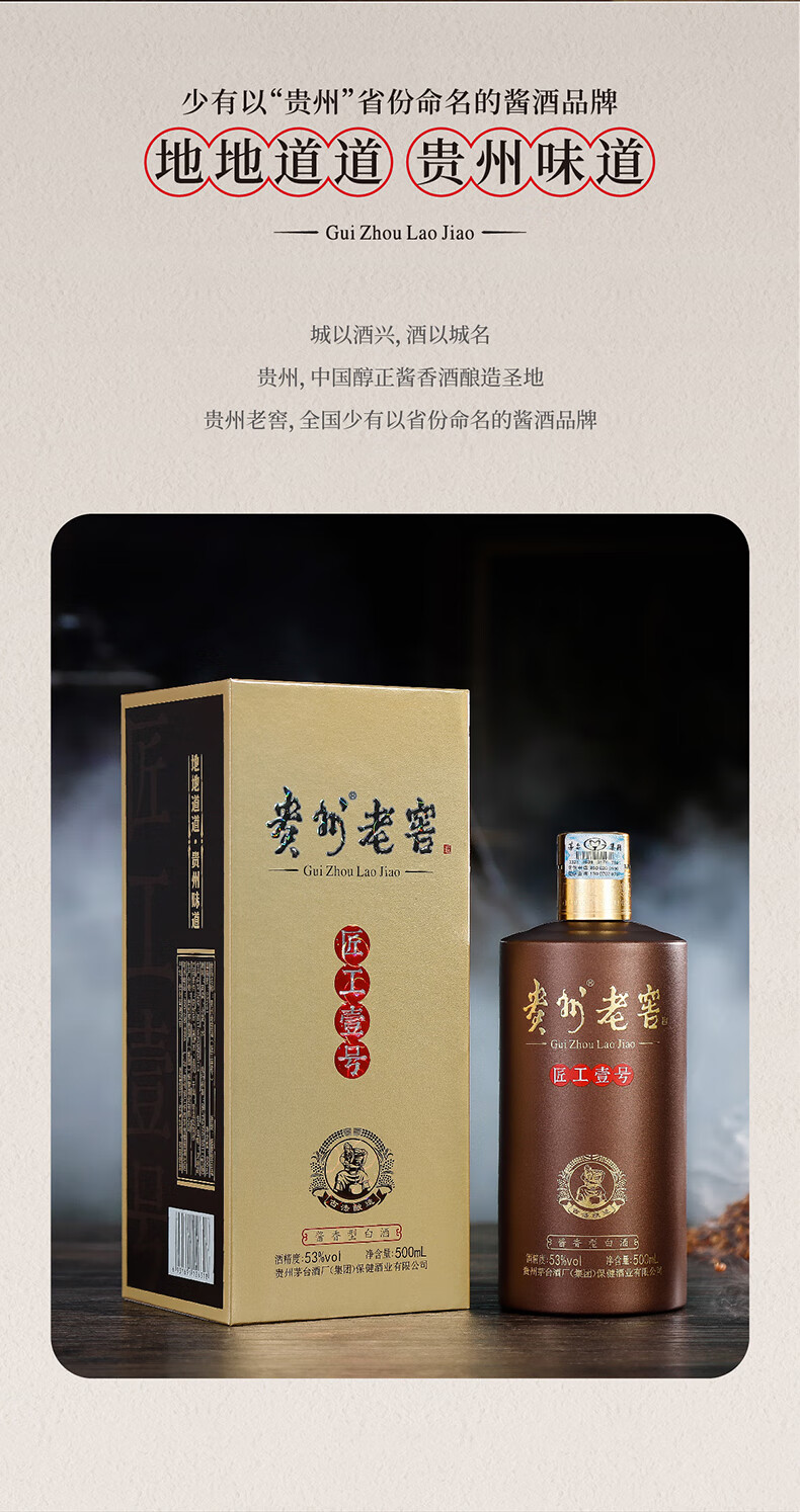 贵州【茅台家族】贵州老窖 新版匠工壹号53度酱香型白酒贵州粮食白酒500ML*6瓶整件