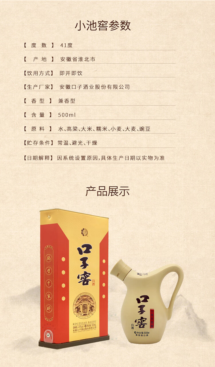 口子窖 小池窖 特酿兼香型白酒 41度 500ml*4瓶 整箱装 高度纯粮