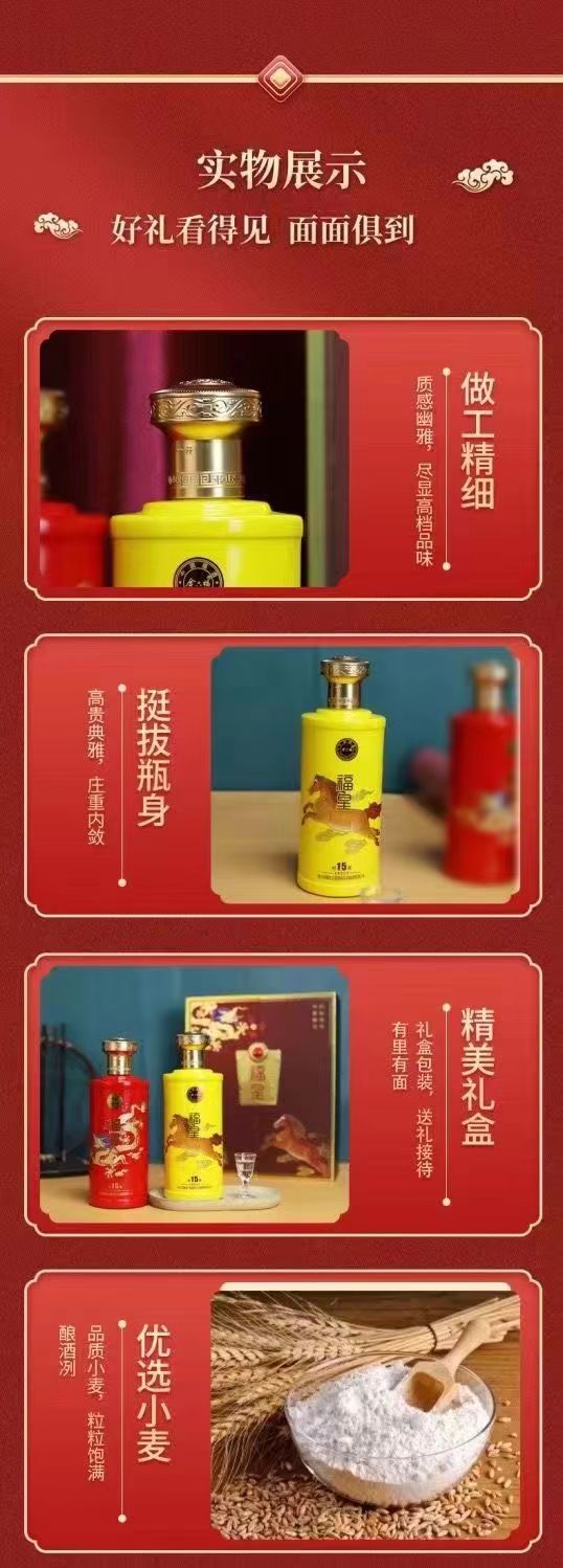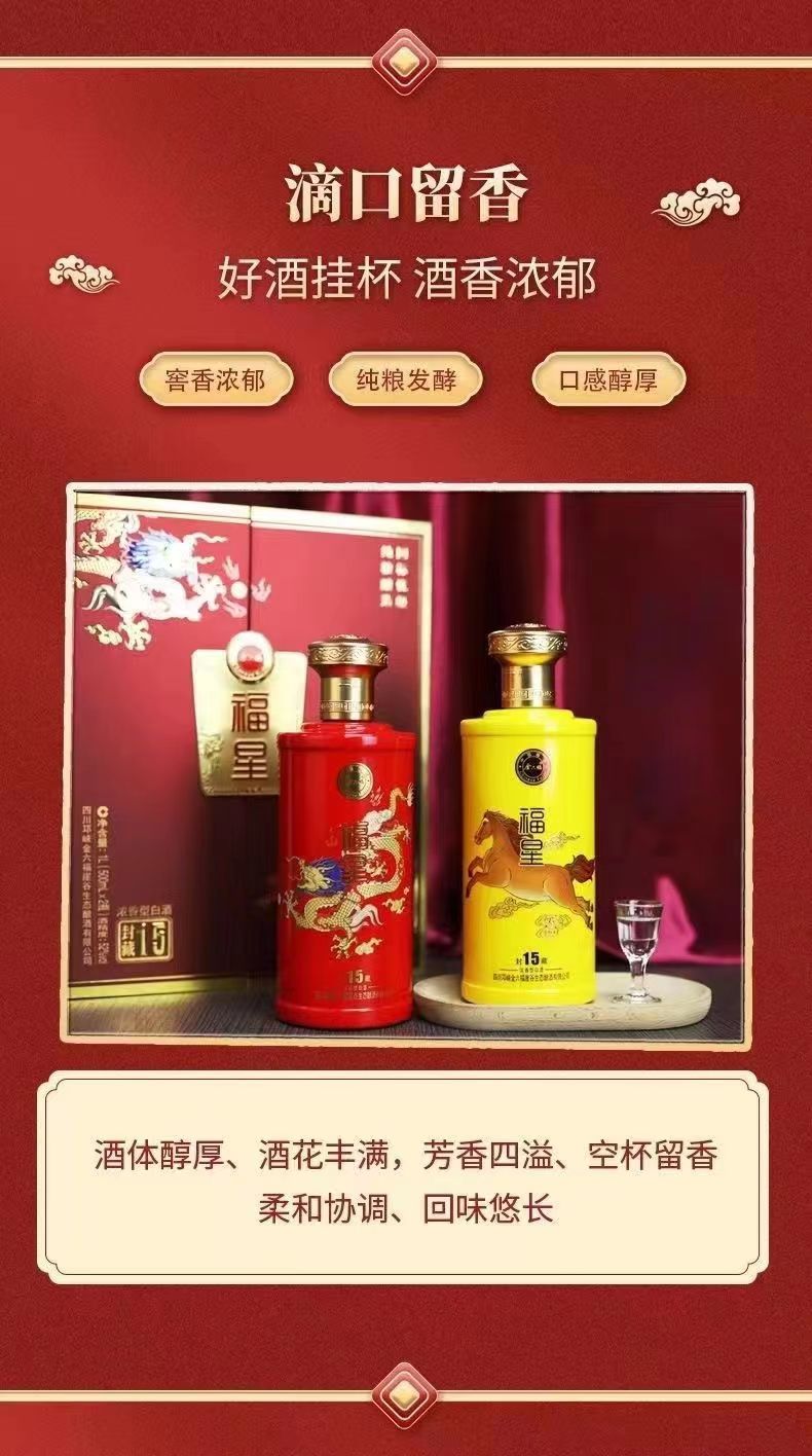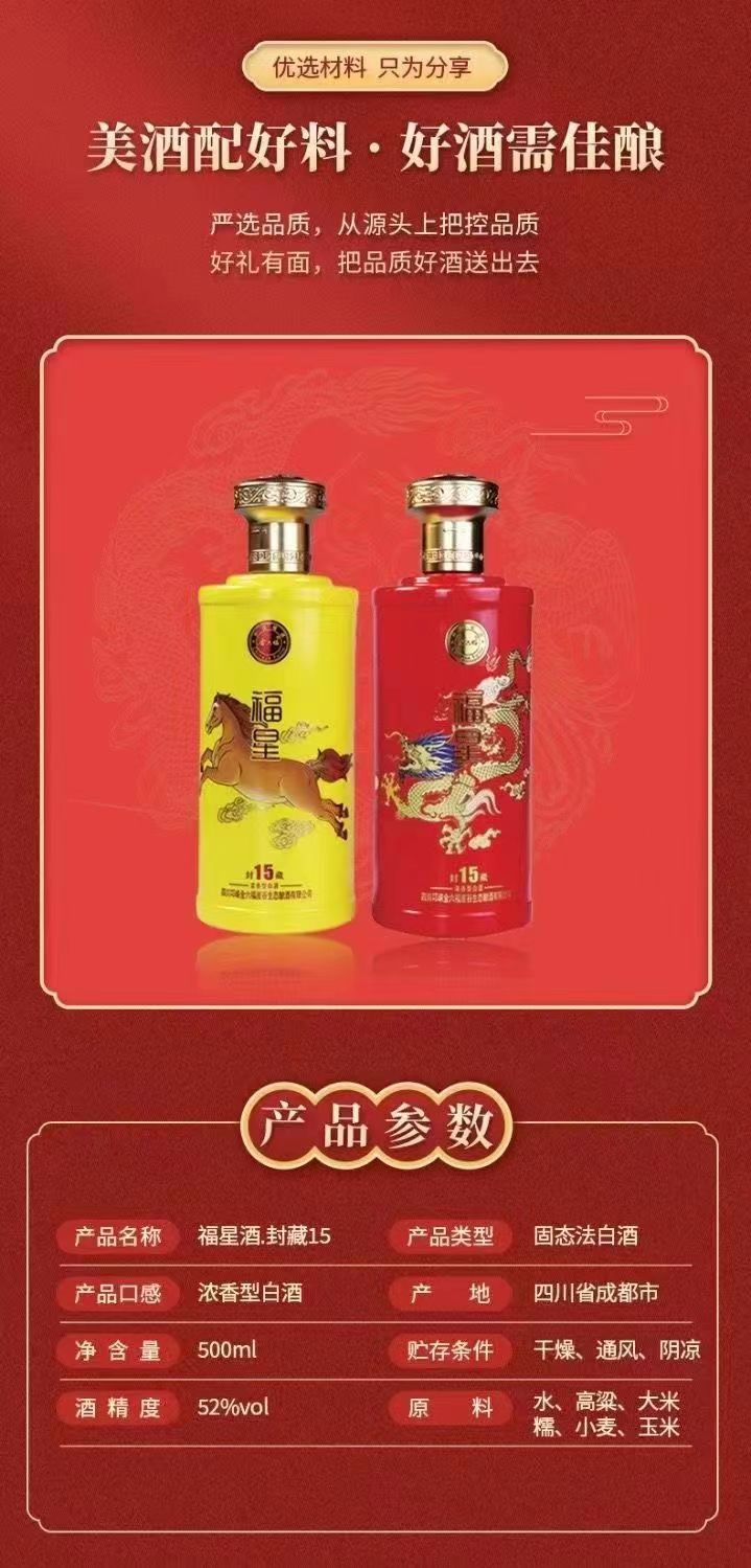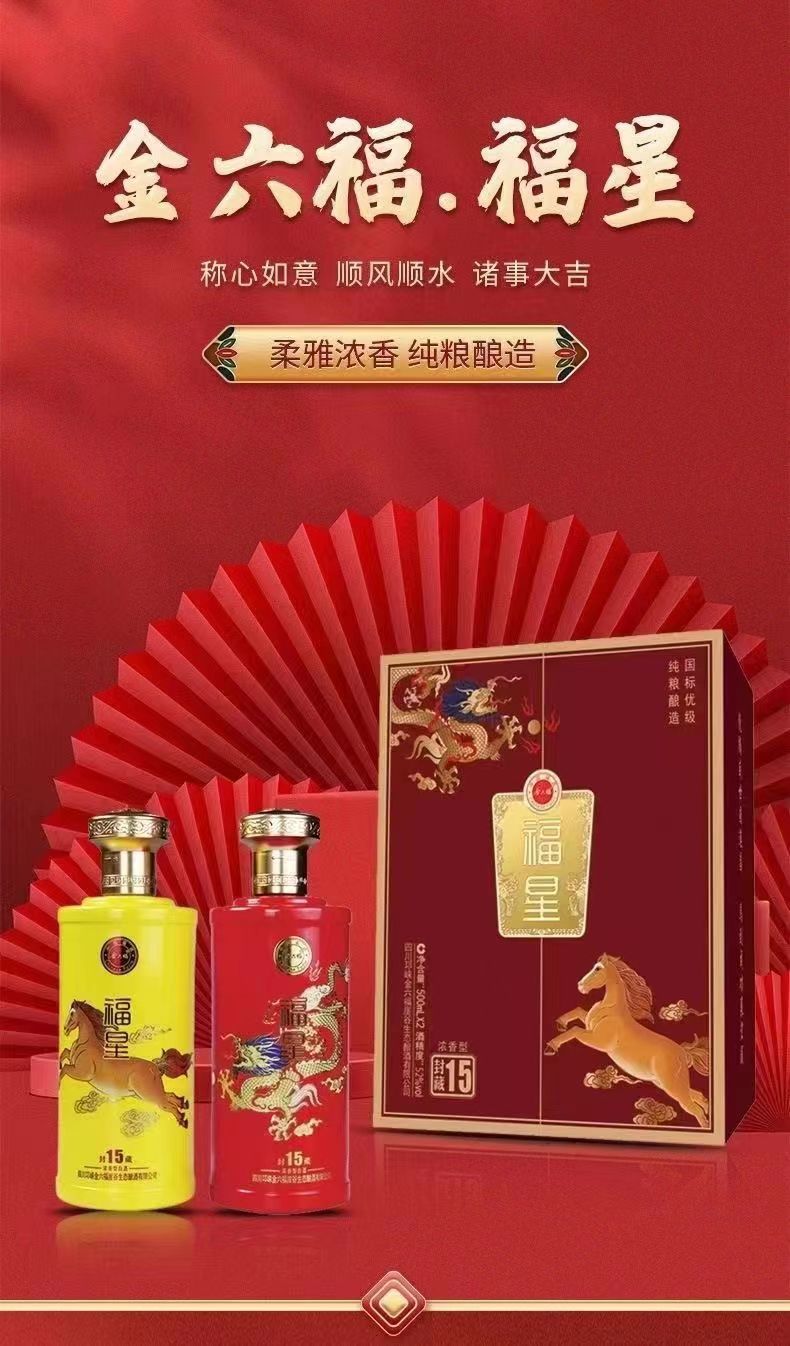 金六福 福星 封藏15 52度 浓香型白酒 纯粮发酵 礼盒 500ml*2瓶*3盒 整箱