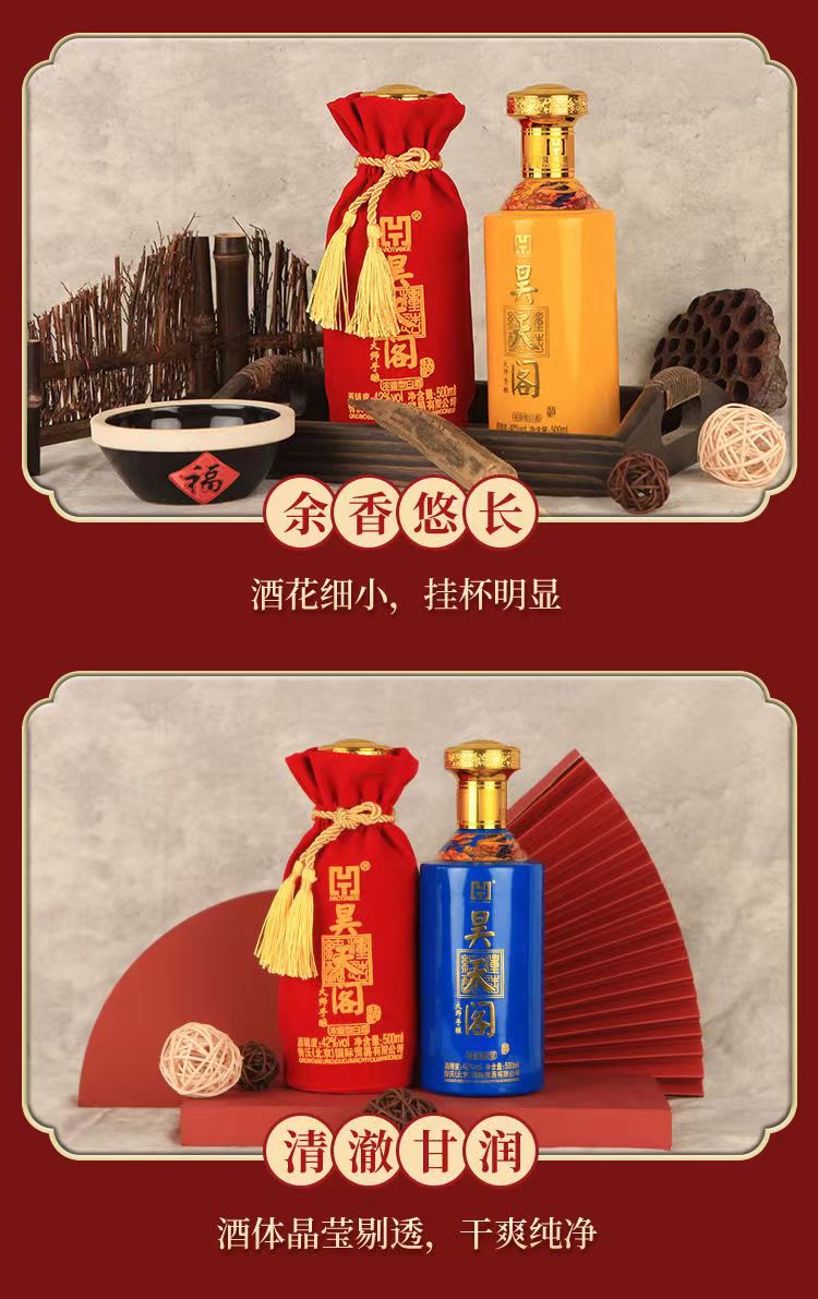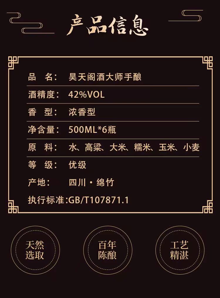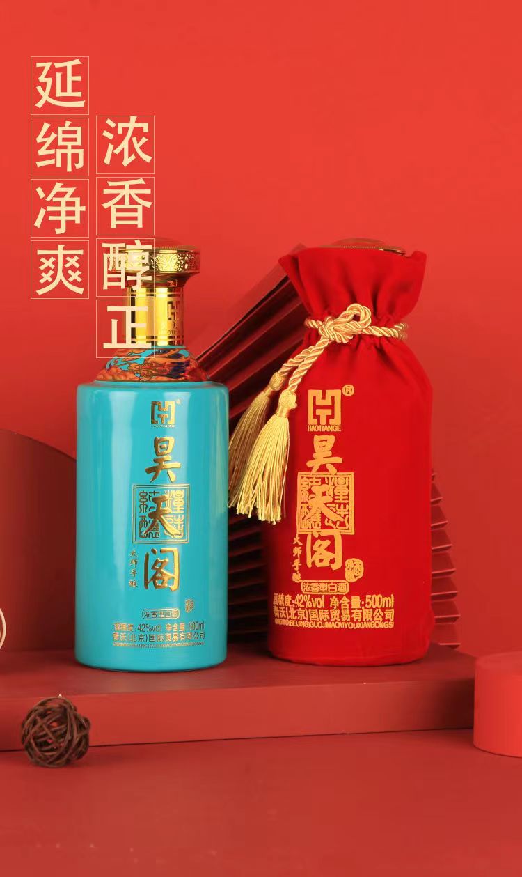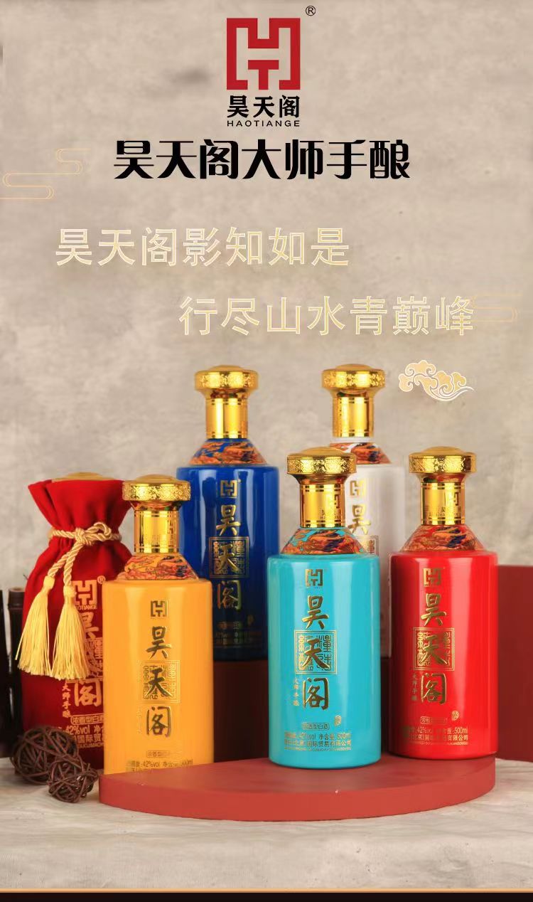 昊天阁 大师手酿 拼色 42度 浓香型白酒 纯粮酿造 500ml*6瓶 整箱