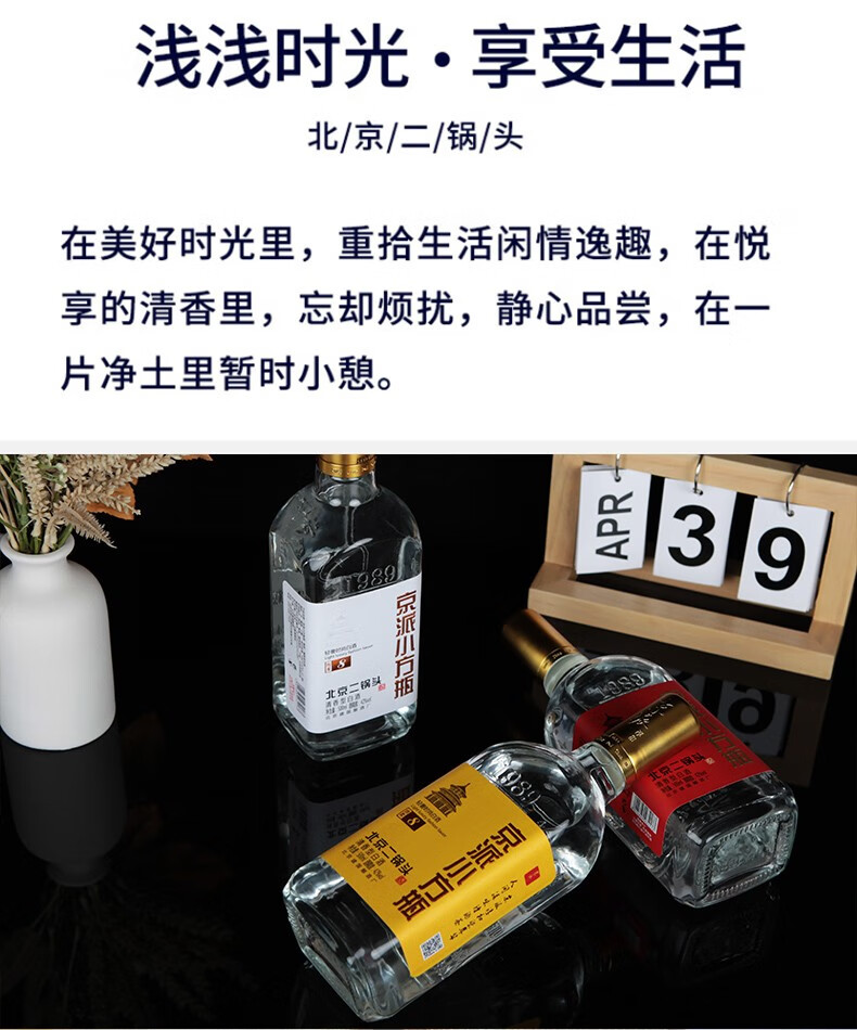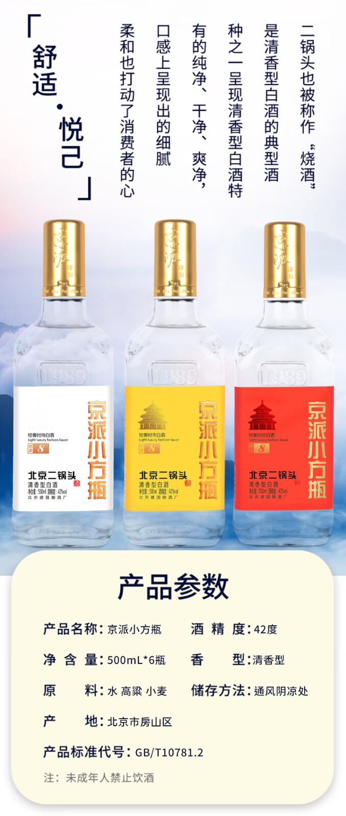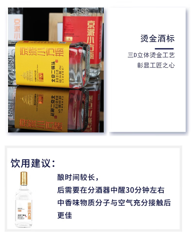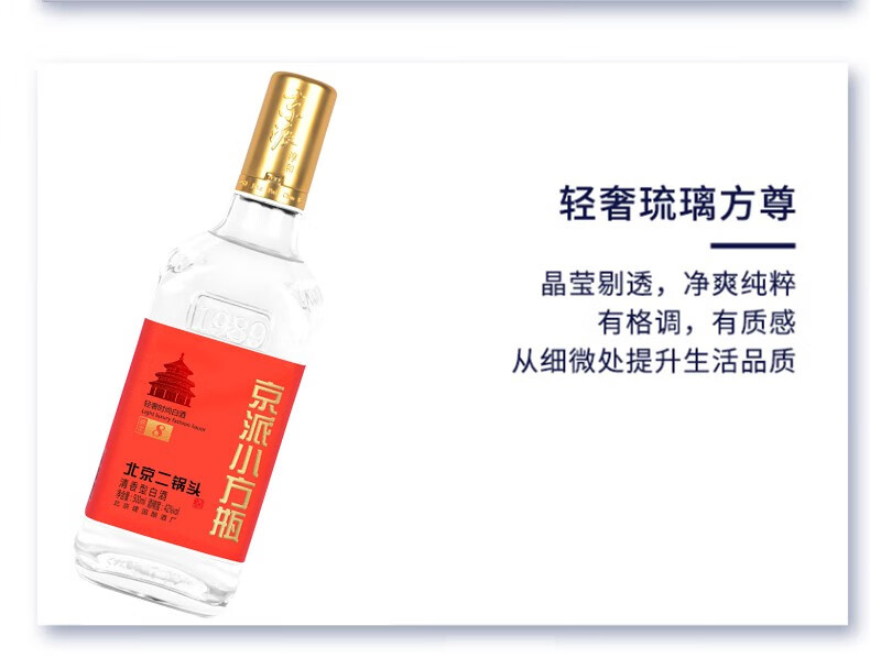 京派淳和 北京二锅头 黄标轻奢小方瓶 42度 清香型纯粮食白酒 500ml*12瓶 整箱